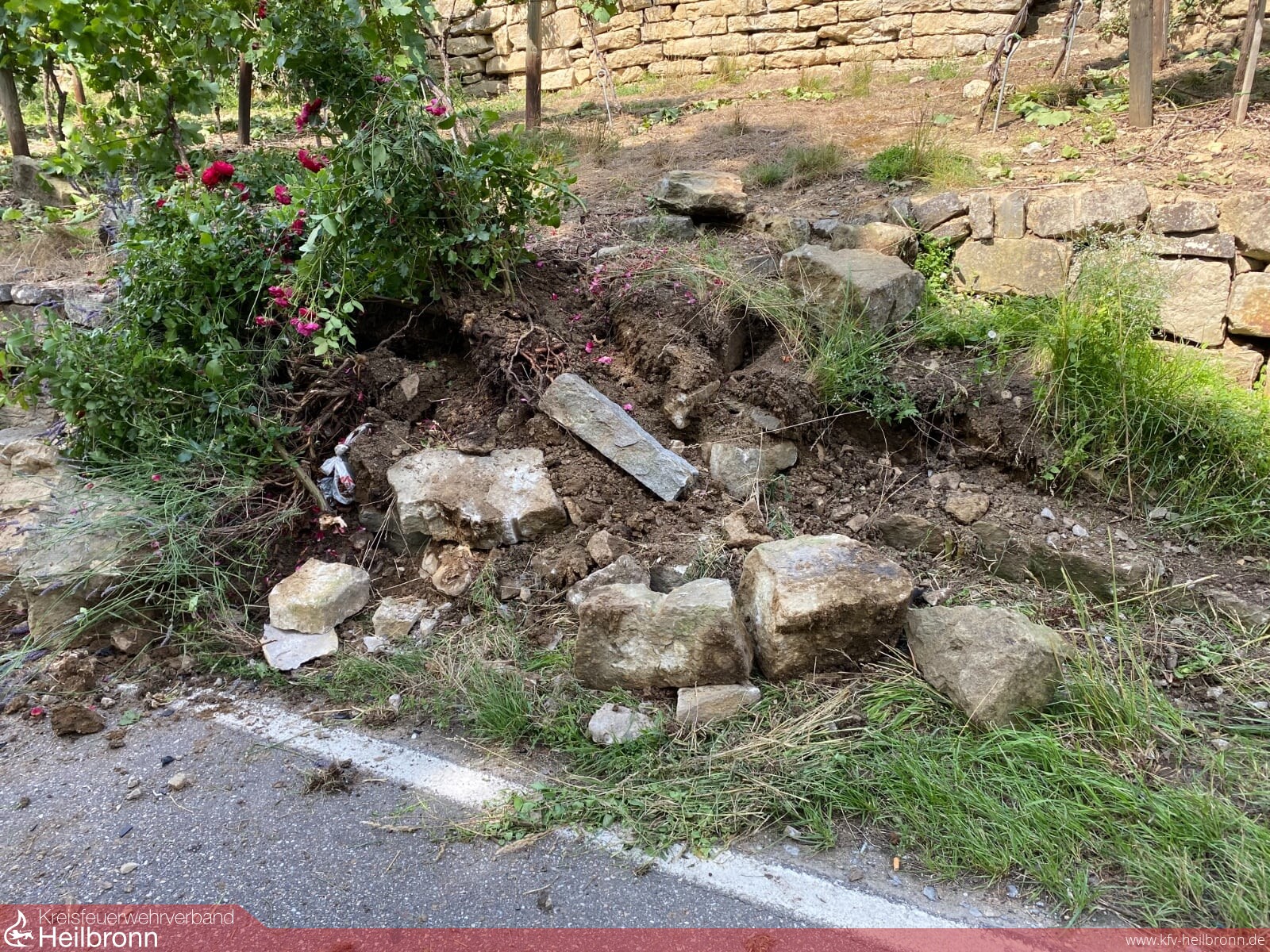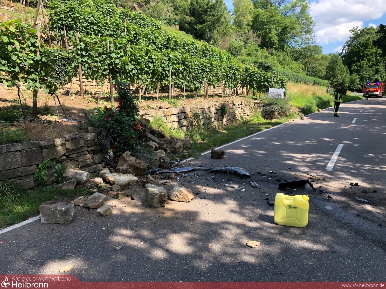 Beim Eintreffen des ersten Fahrzeuges stellte sich der Besatzung folgendes Bild. Ein PKW touchierte die Weinbergmauer an der rechten Straßenseite und riss dort mehrere Steine heraus, in Folge kam es zu einem Frontalunfall in einem weiteren Mauerstück das durch die Wucht des Aufpralls teilweise eingerissen wurde. Die Fahrerin des Fahrzeuges wurde schon durch den Rettungswagen versorg und zur weiteren Untersuchung ins Krankenhaus gebracht.
