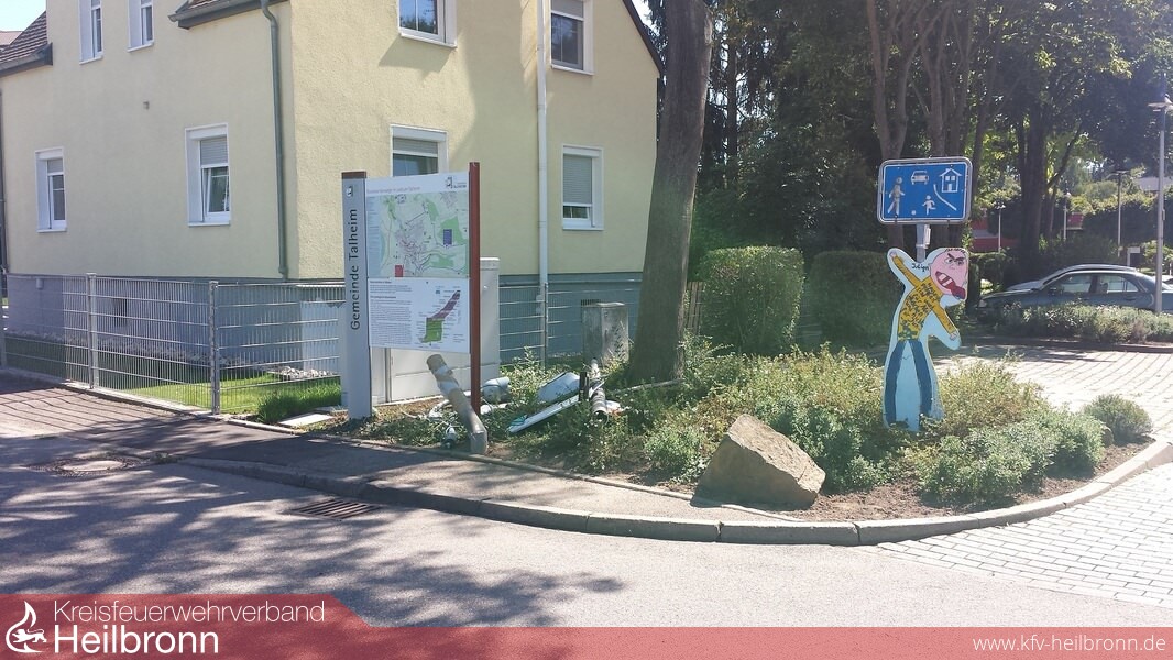 Ein LKW mit Absetzmulde hatte beim rangieren im Kreuzungsbereich der Mühlstraße Ecke In den Hofwiesen in Talheim einen Laternenmasten touchiert und diesen um zirka 45 Grad abgeknickt.