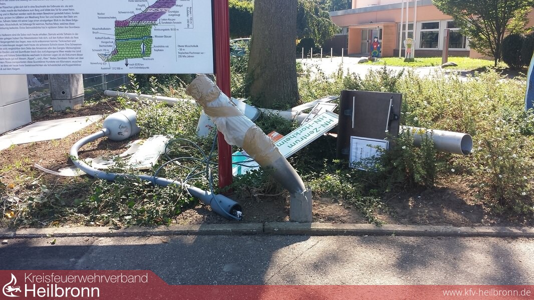 Der Laternenmasten wurde von unserem Fachpersonal für Elektro- fachmännisch von der Stromversorgung getrennt und wasserdicht eingepackt, der Laternenmasten zirka einen halben Meter über dem Boden abgesägt und die Straße gereinigt. Zeitgleich wurde vom Feuerwehrhaus Talheim aus der Stromversorger über die Lage informiert sowie der Zuständige Betreiber der Straßenlaternen.