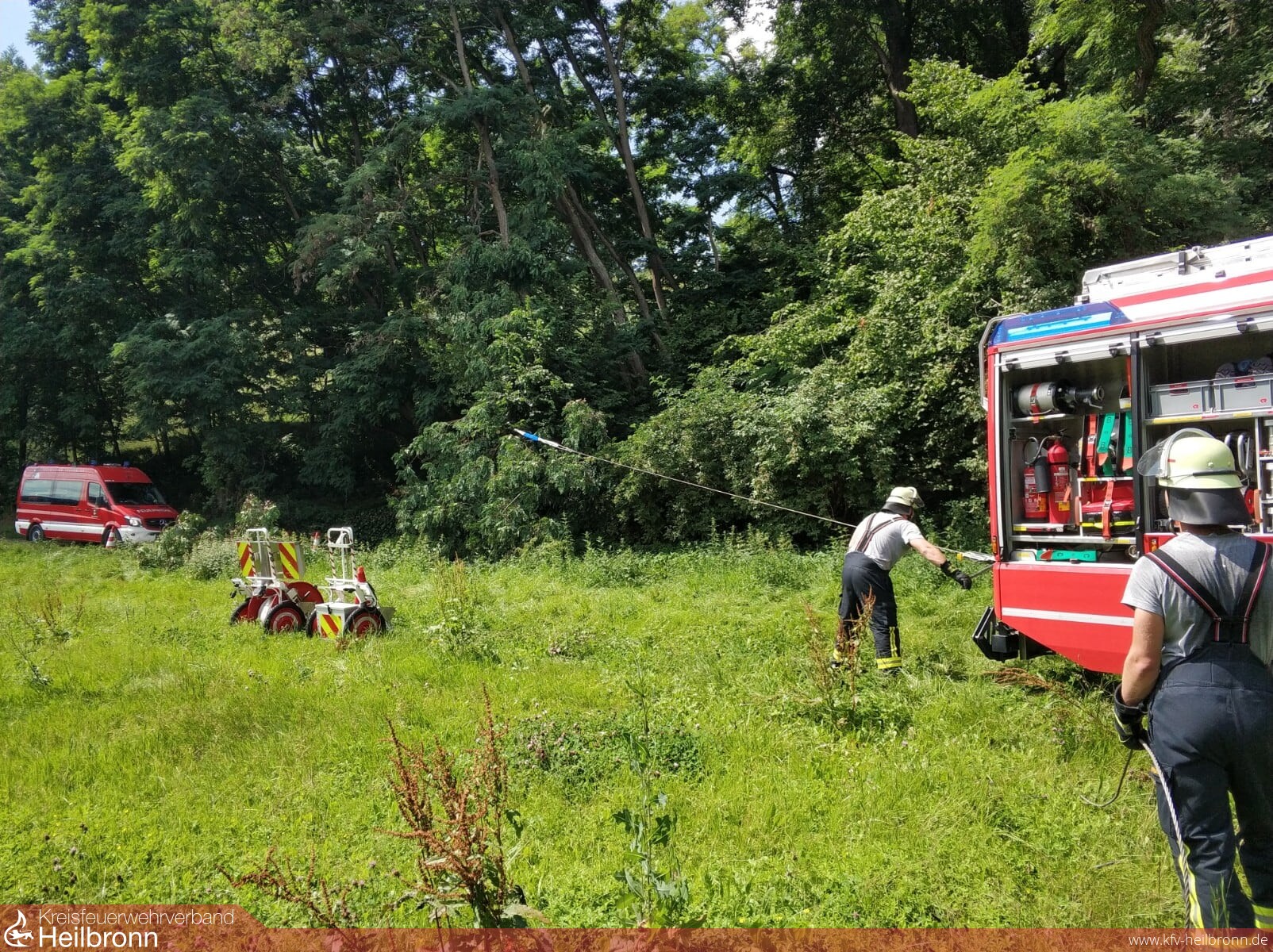 Während des Marktplatzfests wurde die Feuerwehr mittels Kleinalarm zu Verkehrssicherungsmaßnahmen auf den Radweg an der Schozach von der Polizei angefordert. Zwischen der Schozachbrücke und der Öttinger Mühle war in der Nacht durch Unwetter ein Baum auf den Radweg gefallen und versperrte diesen. Der zweite Hauptstamm hing an der Bruchstelle noch am ersten Hauptstamm fest, daher wurde er mittels Mehrzweckzug abgerissen und anschließend per Motorkettensäge zerlegt. Das Holz wurde am Wegrand gelagert und anschließend der Radweg wieder freigegeben.