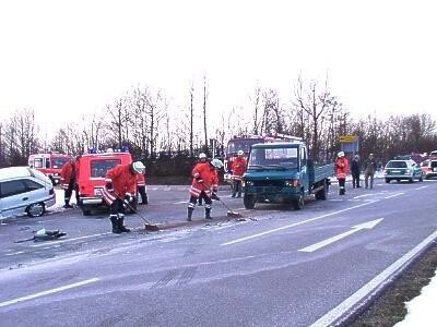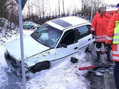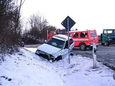 An einer Kreuzung stieß ein PKW mit einem Klein-LKW zusammen und wurde durch die Wucht des Aufpralls in den Straßengraben geschleudert. Die Fahrerin des PKW erlitt glücklicherweise nur leichte Verletzungen und war auch nicht eingeklemmt. Doch da die Fahrertüre durch den Aufprall leicht deformiert war und der PKW sich in einer Schräglage befand, war das Aussteigen nur noch über die Beifahrertüre möglich.