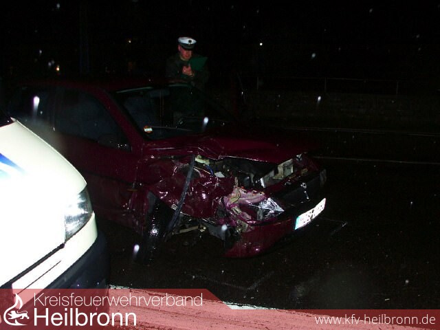 Kurz nach Beendigung des Programms bei der Weihnachtsfeier der Feuerwehr im Feuerwehrhaus wurde der Rüstzug um 23.37 Uhr zu einem Verkehrsunfall mit eingeklemmter Person auf der B 27 in Jagstfeld alarmiert. Innerhalb von zwei Minuten konnten die Fahrzeuge mit den schon zuvor eingeteilten Mannschaften ausrücken.