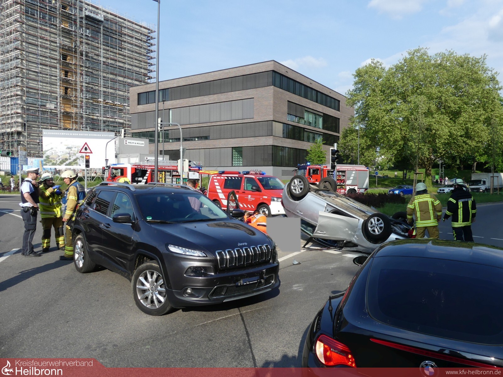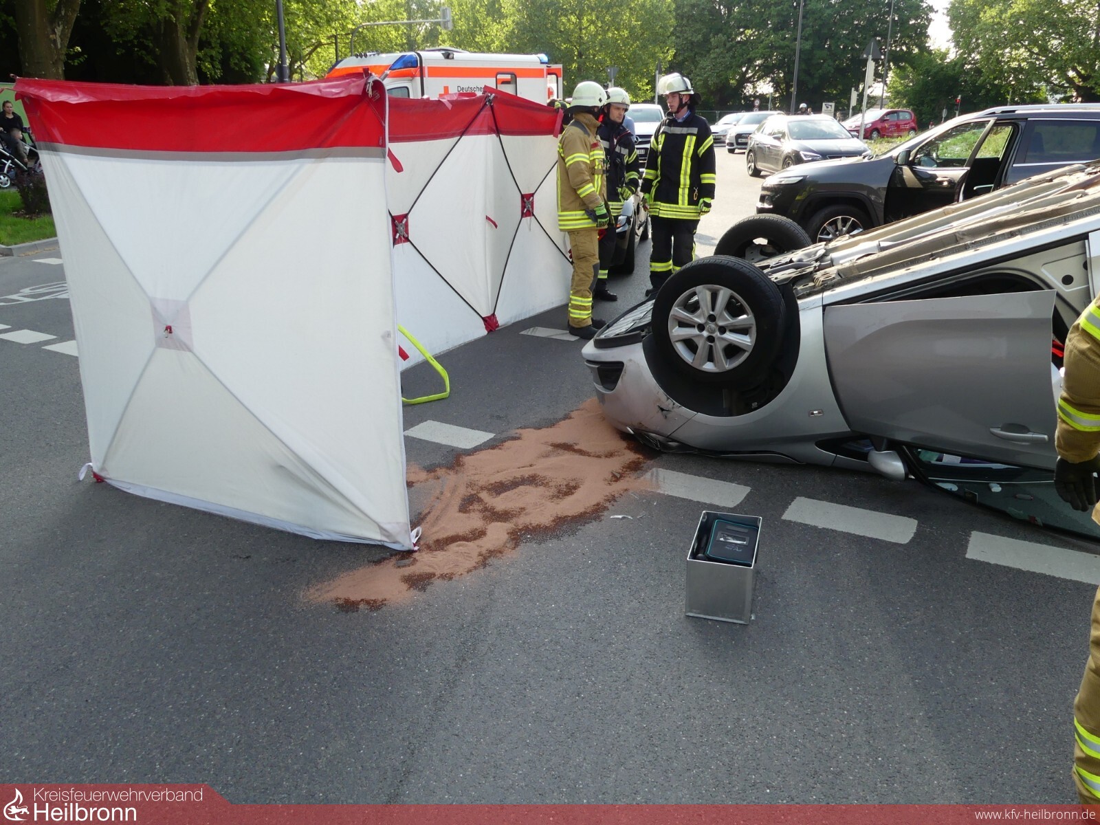 Bei einem Fahrstreifenwechsel hatte es einen Zusammenstoß gegeben. Eines der Fahrzeuge geriet hierbei ins Schlingern und landete auf dem Dach.