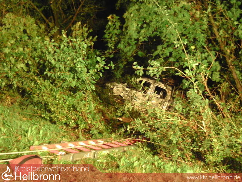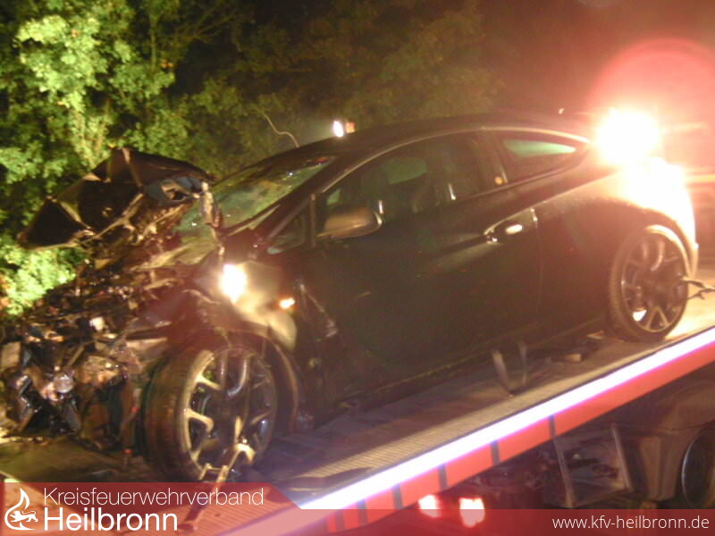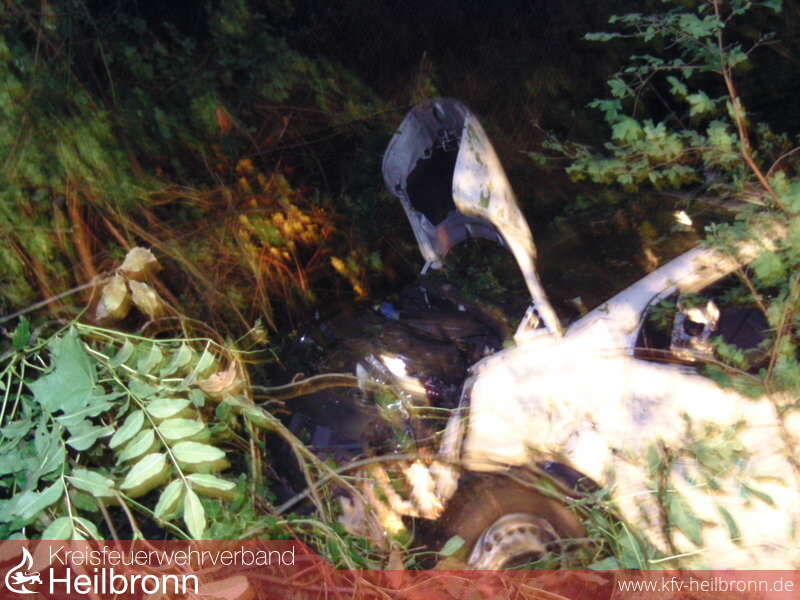 Die Insassen konnten sich glücklicherweise selbstständig befreien.Die Feuerwehr sicherte die Unfallstelle ab und leuchtetediese aus.Um das Fahrzeug bergen zu können, wurde die Leitplanke durchtrennt und im Weg stehende Bäume und Äste zersägt.Des weiteren wurden auslaufende Betriebsmittel mit Hilfe von Ölbinder aufgenommen.