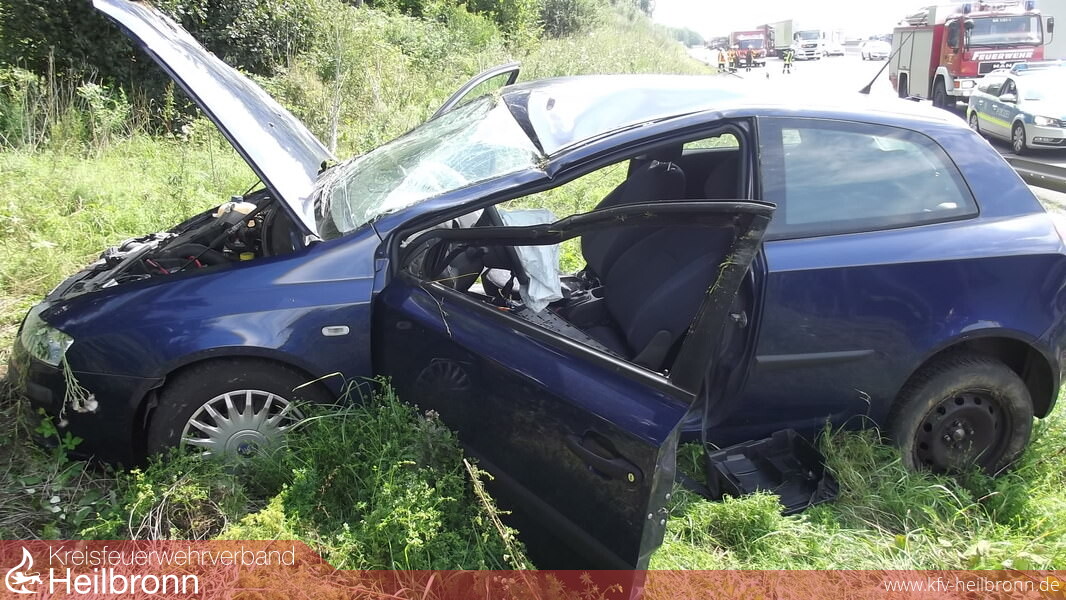 Auf der Anfahrt wurde der Feuerwehr Bad Rappenau mitgeteilt, dass das Fahrzeug auf dem Dach liegt und eine Person eingeklemmt ist. Beim Eintreffen an der Einsatzstelle wurde das Fahrzeug im Grünstreifen auf den Rädern stehend vorgefunden. Der PKW-Lenker hatte zwischenzeitlich mit Unterstützung von Ersthelfern das Fahrzeug verlassen können.