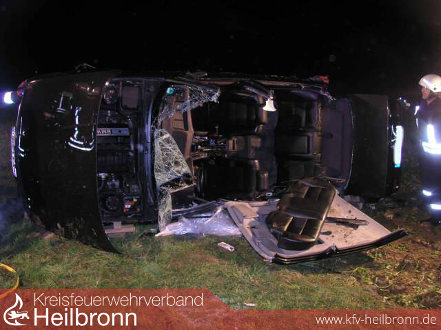 Vor Ort lag ein verunfalltes Fahrzeug neben der Bundesstraße auf der Seite. Im Fahrzeug befanden sich der eingeklemmte Fahrer sowie eine Beifahrerin.