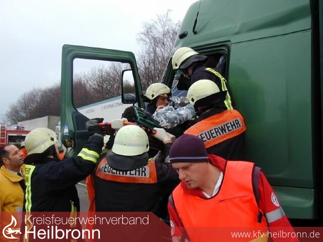 Der Fahrer eines LKW wurde in seinem Führerhaus eingeklemmt. Er musste mit hydraulischen Rettungsgeräten aus seinem Fahrzeug befreit werden. Während der Rettungsaktion wurde er durch den Notarzt versorgt.