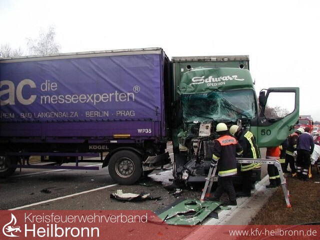 Aufgrund des kilometerlangen Staus und der „festgefahrenen“ LKW´s und PKW´s im Bereich der Anschlussstelle Heilbronn/Obereisesheim, wurde zusätzlich zur Feuerwehr Heilbronn die Freiwillige Feuerwehr Bad Rappenau angefordert, die entgegen der Fahrtrichtung zur Unfallstelle eilte.