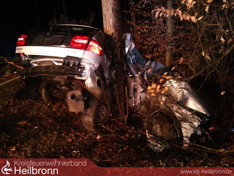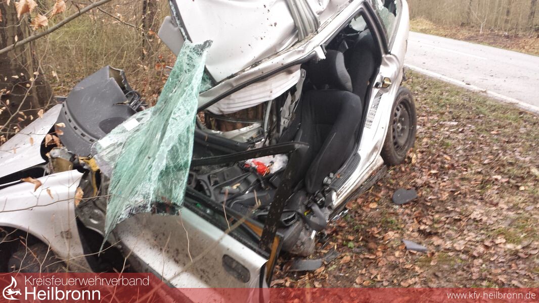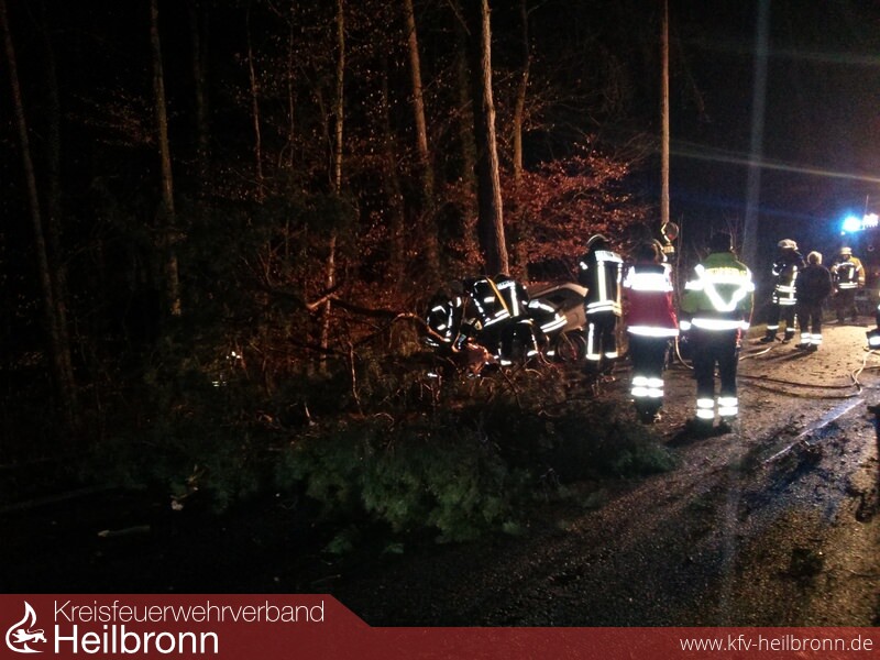 Beim Eintreffen an der Unfallstelle wurde ein PKW, welcher gegen einen Baum geprallt war, vorgefunden. Bei dem Fahrer konnten keine Vitalfunktionen festgestellt werden, worauf von dem kurz nach der Feuerwehr eintreffenden Notarzt die Crashrettung angeordnet wurde. Der Fahrer wurde durch die Feuerwehr Talheim umgehend aus seinem PKW befreit.