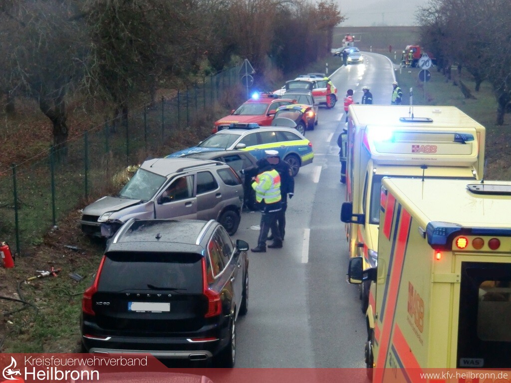 Die Feuerwehren Untergruppenbach und Heilbronn wurden zu einem Verkehrsunfall auf die K2155 zwischen Untergruppenbach und der Waldkreuzung alarmiert.