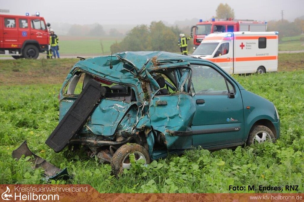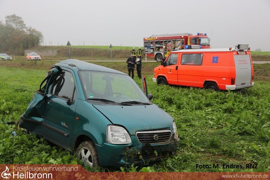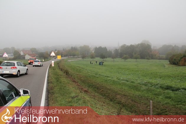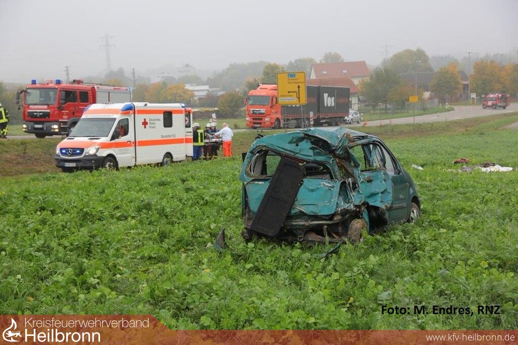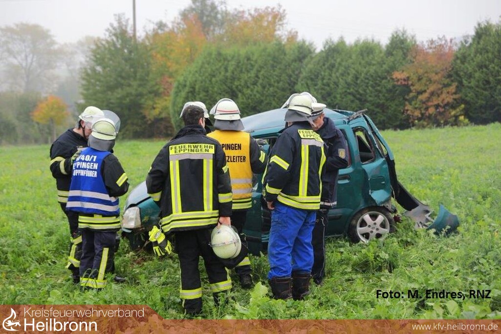 Am Morgen des 21.10.2015 wurde die Eppinger Wehr zu einem Verkehrsunfall auf der L1110 zwischen Eppingen und Richen alarmiert. Ein PKW war aus ungeklärten Gründen von der Fahrbahn in den Seitenstreifen gekommen und im Grüngelände über einen Hügel geschossen. In Folge dessen überschlug sich der PKW mehrmals und kam circa 200-300 Meter nach dem Einfahren in den Grünstreifen auf der Seite zum liegen. Die Fahrerin des PKW wurde vermutlich bei den Überschlägen des Fahrzeugs aus der Heckklappe geschleudert und lag etwa 20 Meter vom Fahrzeug entfernt in der Wiese.
