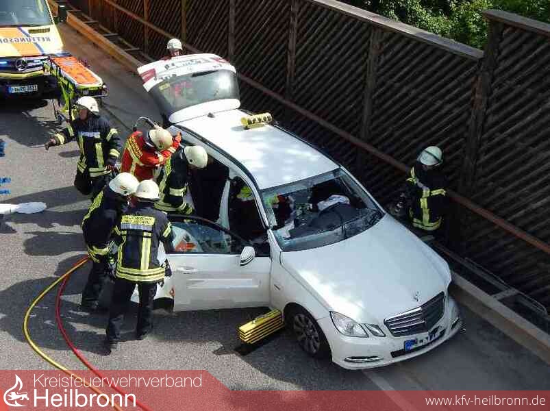 An der Abzweigung nach Heilbronn-Horkheim waren ein Taxi und ein Lkw aus noch ungeklärter Ursache zusammengestoßen.