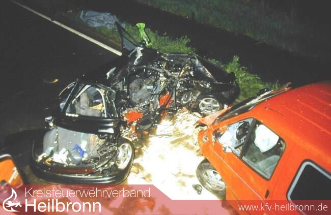 Die Binswanger Straße war bis 4.00 Uhr in beide Richtungen gesperrt. Die Berufsfeuerwehr Heilbronn barg die beiden eingeklemmten jungen Männer aus ihrem Fahrzeug.