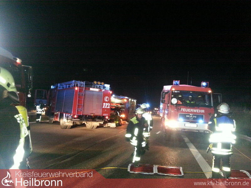 Im Einsatz waren von der Feuerwehr Ilsfeld vier Fahrzeuge und 25 Einsatzkräfte. Von den weiteren Feuerwehren waren darüber hinaus noch 13 Fahrzeuge mit 71 Einsatzkräften an der Einsatzstelle. Neben der Feuerwehr waren auch mehrere Polizeistreifen am Einsatz beteiligt. Ein Rettungswagen wurde zur Eigensicherung an die Einsatzstelle bestellt. Der Einsatz war um 0:56 Uhr schließlich beendet.
