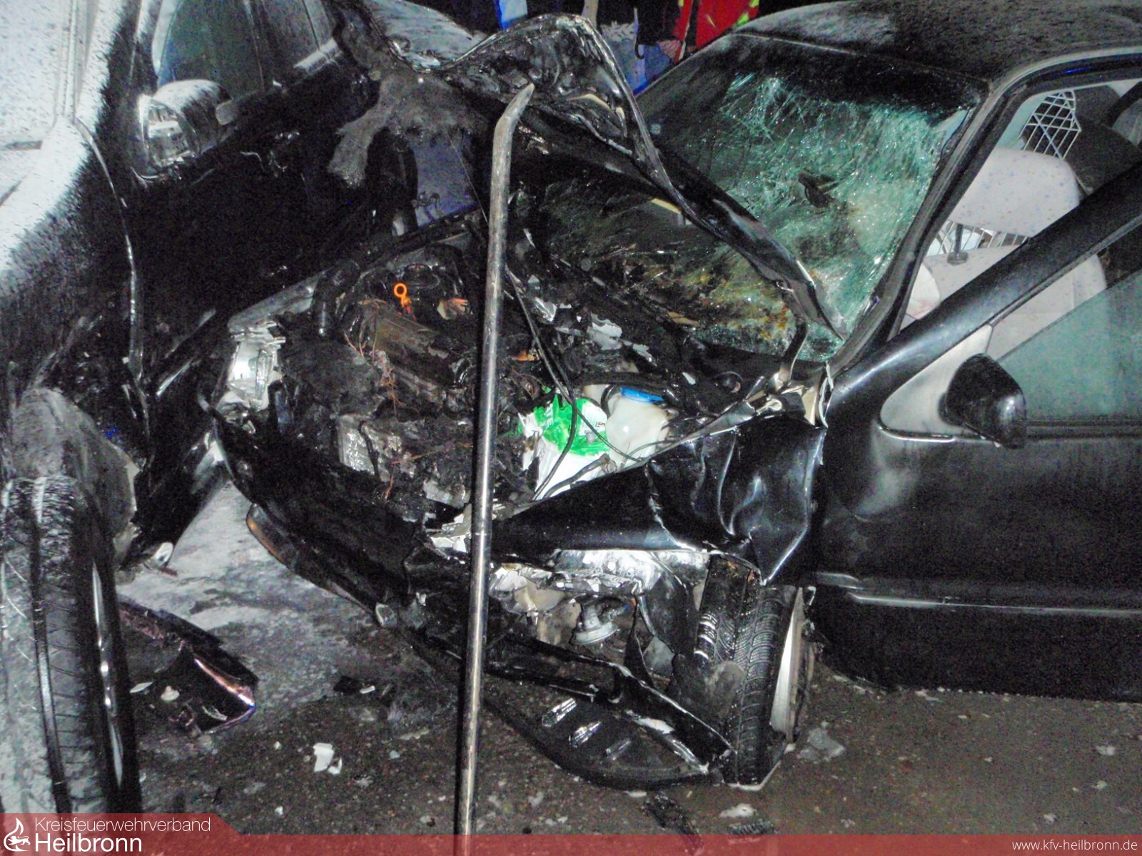 Ein 36-jähriger VW Polo-Fahrer war mit einem Mercedes zusammengestoßen und erlitt hierbei schwere Verletzungen. Die beiden Insassen des Mercedes blieben unverletzt.