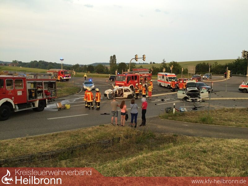 Um 19:57 Uhr wurden die Abt. Bad Rappenau, Bonfeld und Fürfeld zu einem Verkehrsunfall alarmiert. Im Kreuzungsbereich Buchäckerring/L1107 waren zwei PKW kollidiert und dabei ein Amplemast umgerissen worden. Glücklicherweise waren entgegen der ersten Meldung, keine Personen in den Fahrzeugen eingeklemmt. Die drei verletzten Personen wurden vom Rettungsdienst versorgt, die Feuerwehr sicherte die Einsatzstelle ab, nahm Betriebsmittel auf und baute die Batterien aus den Fahrzeugen aus.