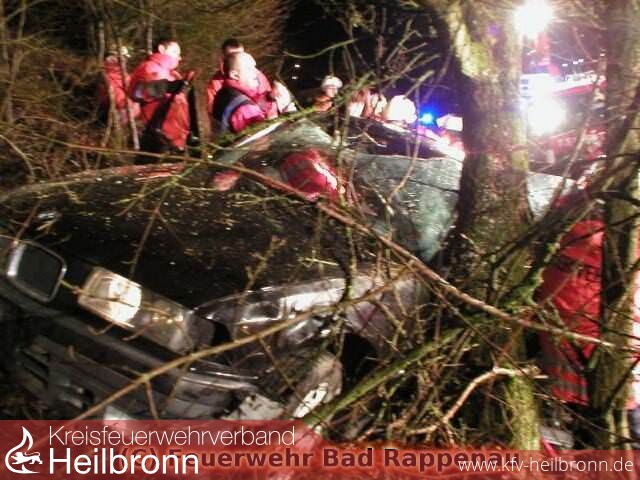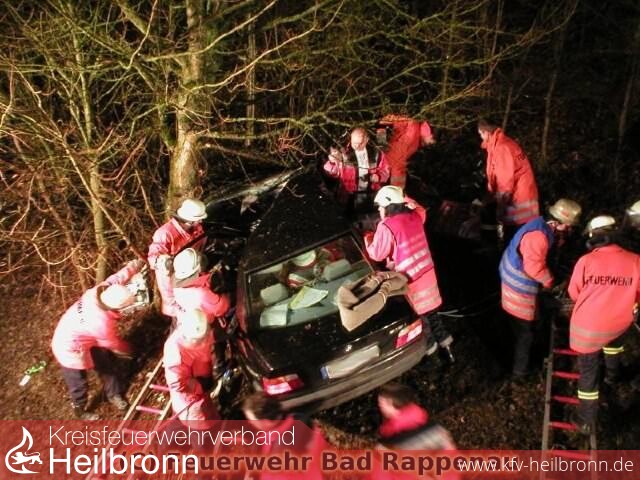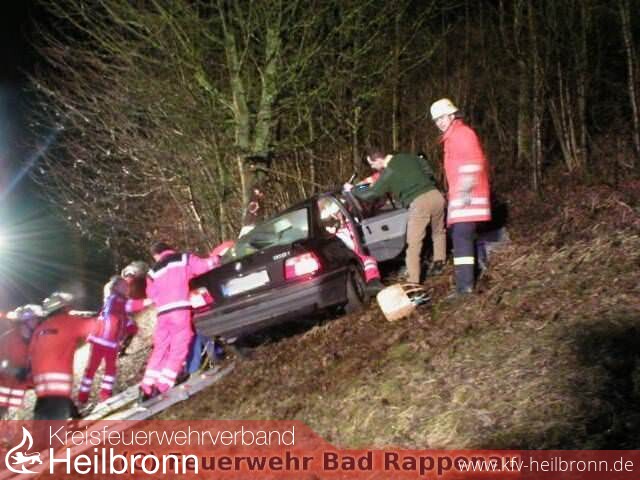 Da das Fahrzeug die Böschung hoch mit der Fahrertür gegen einen Baum prallte, mussten mittels Greifzug des Rüstwagens aus Bad Rappenau Sicherungsmaßnahmen durchgeführt werden. Nachdem das Dach des Fahrzeuges entfernt wurde, konnte die Verletze Person mit vereinten Kräften aus dem Fahrzeug befreit werden und dem Rettungsdienst übergeben werden. Während der gesamten Rettungsaktion, wurde die Person vom DRK betreut und stabilisiert.