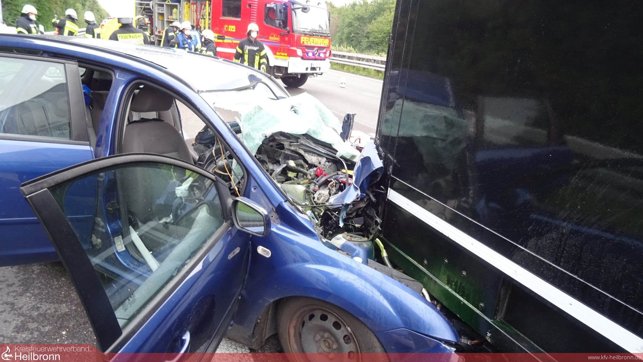 Beim Eintreffen der ersten Kräfte stellte sich die Lage so dar, dass ein PKW an einem Stauende nahezu ungebremst unter das Heck eines LKW-Gespanns gefahren war. Im Fahrzeug befand sich eine stark eingeklemmte Person, welche bereits von Ersthelfern versorgt wurde. In Abstimmung mit dem Notarzt wurde die Person mittels mehrerer hydraulischer Rettungsgeräte aus ihrem PKW befreit und dem Rettungsdienst übergeben. Für den Weitertransport wurde ein Rettungshubschauber eingesetzt.