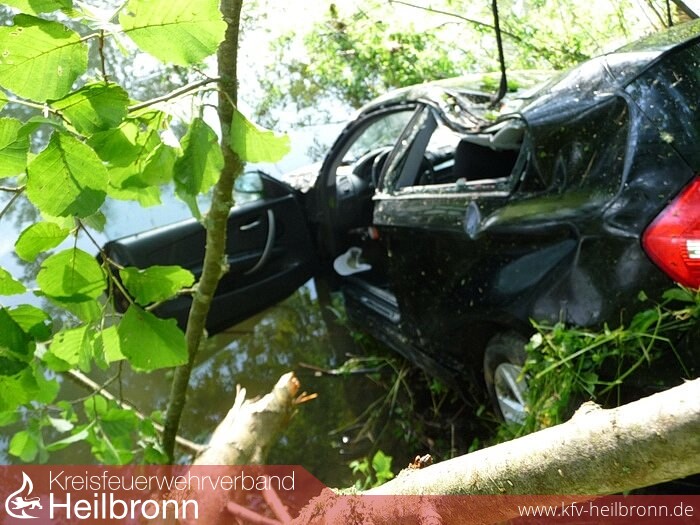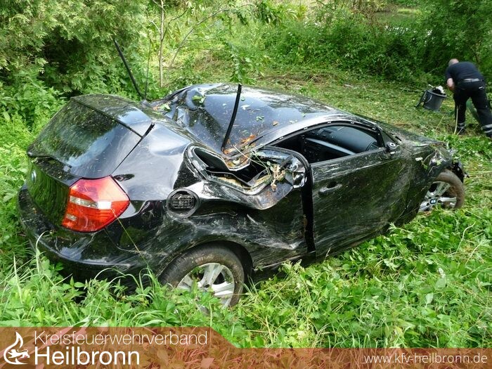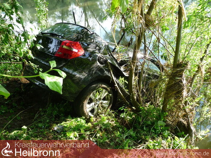 Dort kam ein mit drei Personen besetzter PKW von der Fahrbahn ab und schleuderte in die angrenzende Jagst.