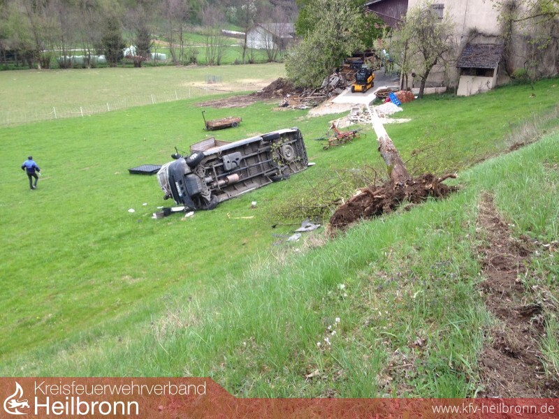 Beim Versuch gegen zu lenken verlor er die Kontrolle über den Transporter prallte gegen einen Baum, überschlug sich und stürzte die Böschung hinunter.