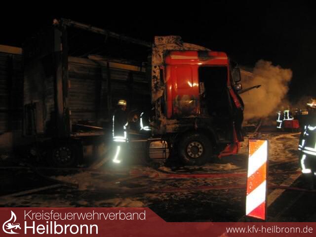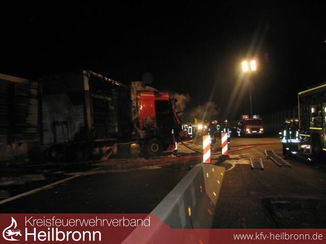 Gegen 20:40 Uhr ereignete sich auf der A6 von Mannheim in Richtung Nürnberg im Baustellenbereich des Weinsberger Kreuzes ein Lkw Unfall bei dem ein Lastzug in Brand geriet.