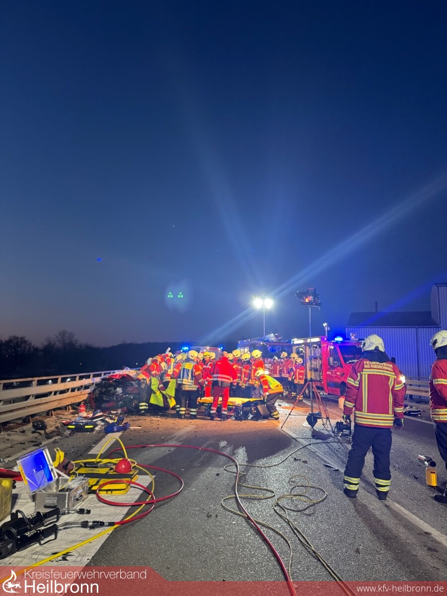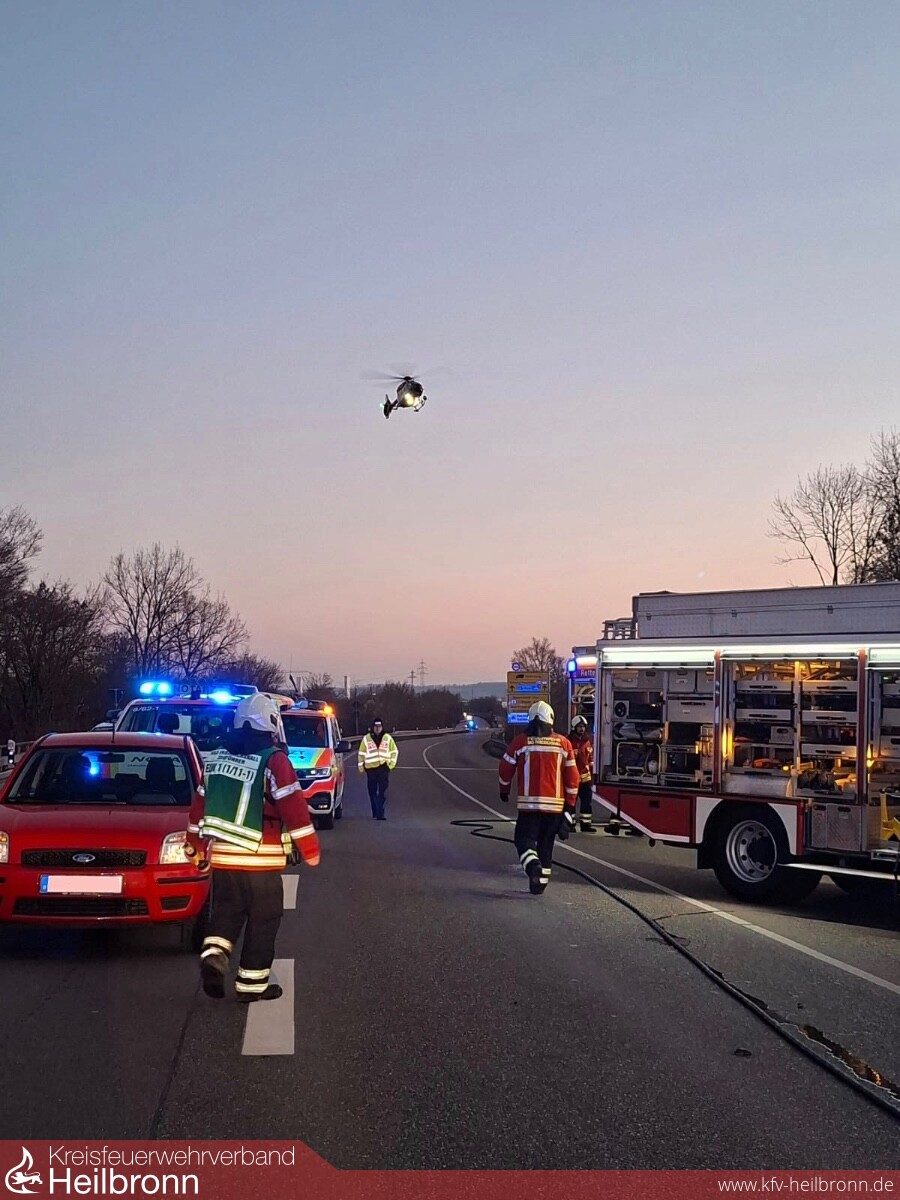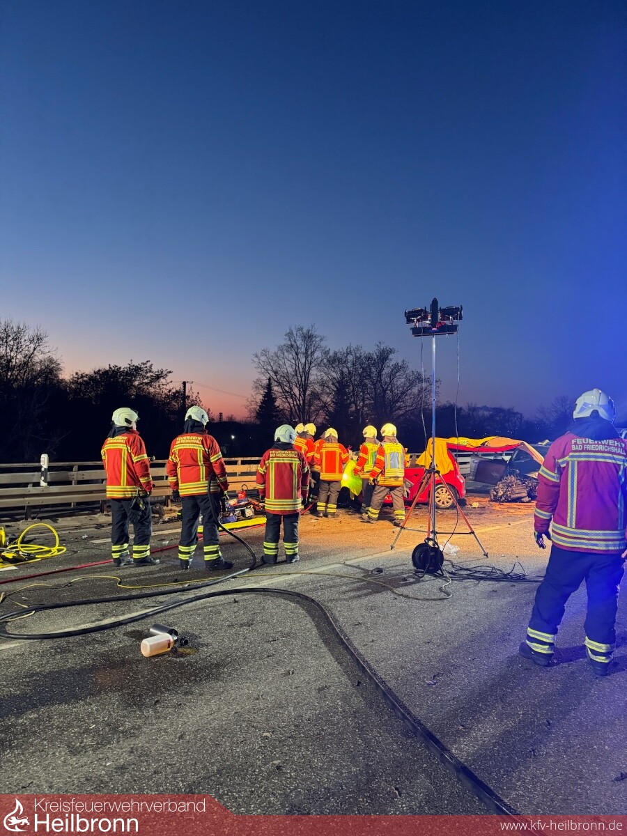 Um 16:28 Uhr wurde die Einsatzabteilung Bad Friedrichshall mit dem Stichwort „VU PKW Person eingeklemmt“ auf die Bundesstraße B27 alarmiert. Beim Eintreffen des Einsatzleiters wurden drei verunfallte Fahrzeuge vorgefunden, in welchen drei Personen eingeklemmt waren. Eine weitere Person war leicht verletzt, nicht eingeklemmt.
