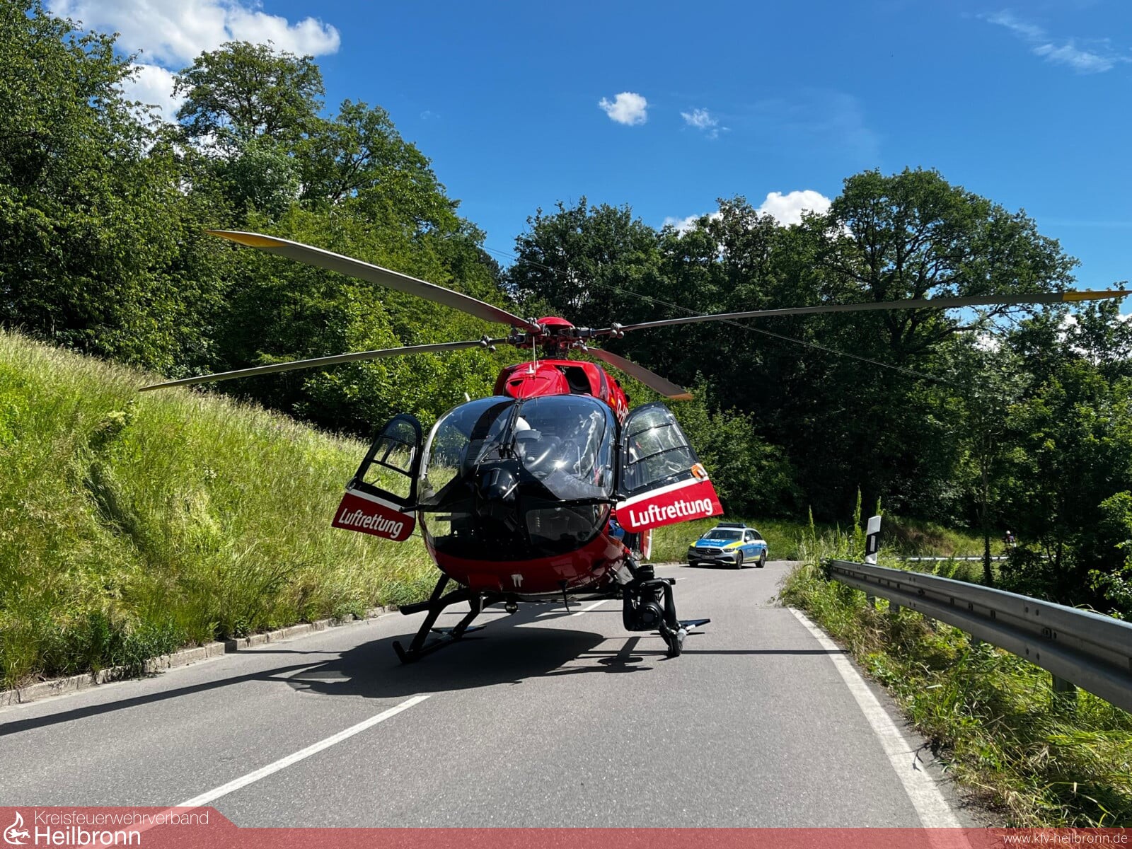 Die ersteintreffenden Kräfte der Freiwilligen Feuerwehr Neudenau leisteten Erste Hilfe und stellten den Brandschutz an der Unfallstelle sicher. Zudem wurden austretende Betriebsstoffe aufgenommen und die Unfallstelle abgesichert. Hierbei wurde auch ein Landeplatz für den Rettungshubschrauber abgesichert, der den verletzten Motorradfahrer ins Krankenhaus transportierte.
