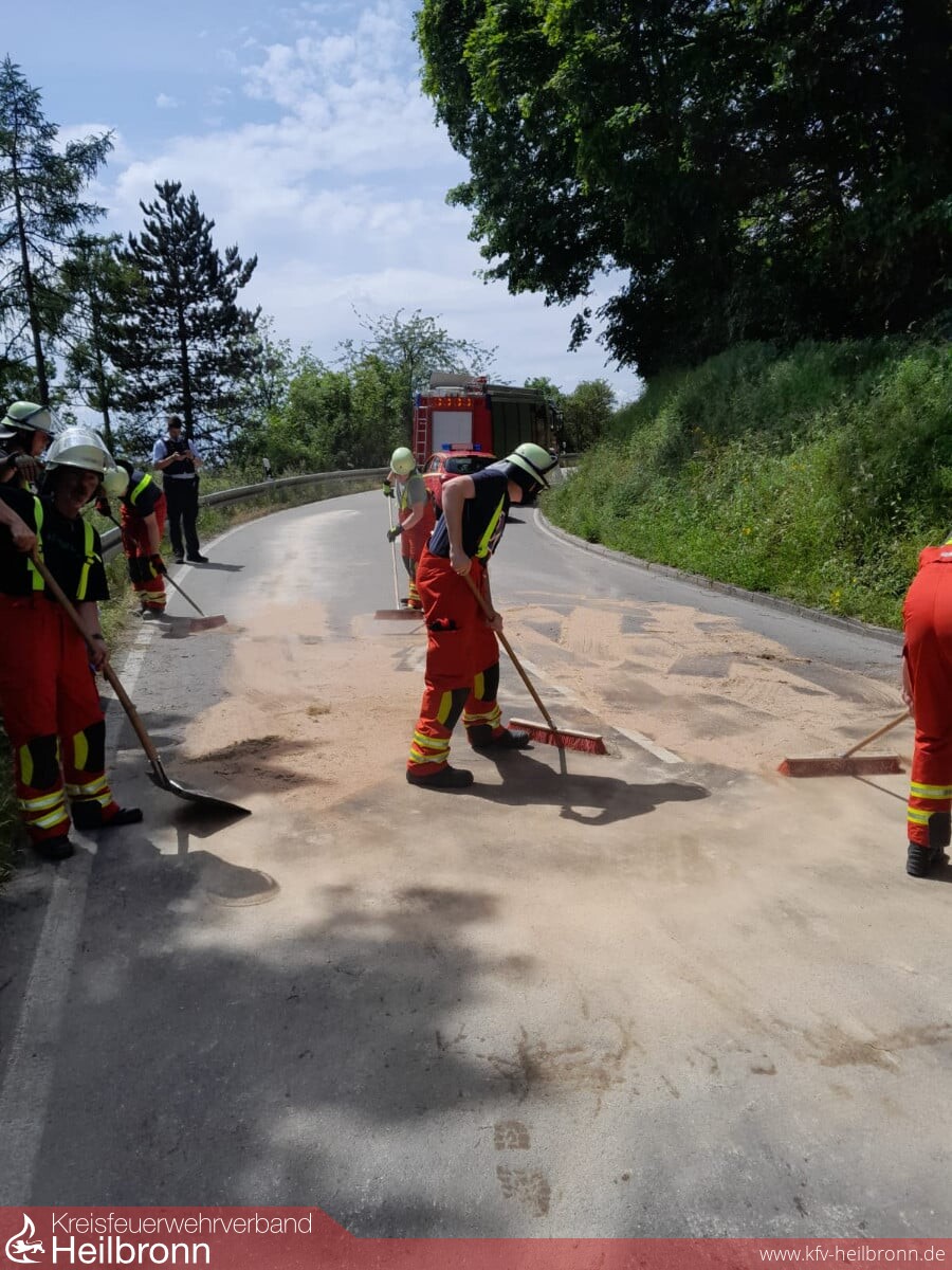 Die Unfallstelle wurde der Polizei und der hinzugerufenen Straßenmeisterei übergeben. Anschließend wurde die Straße noch maschinell von einem Fachunternehmen gereinigt.