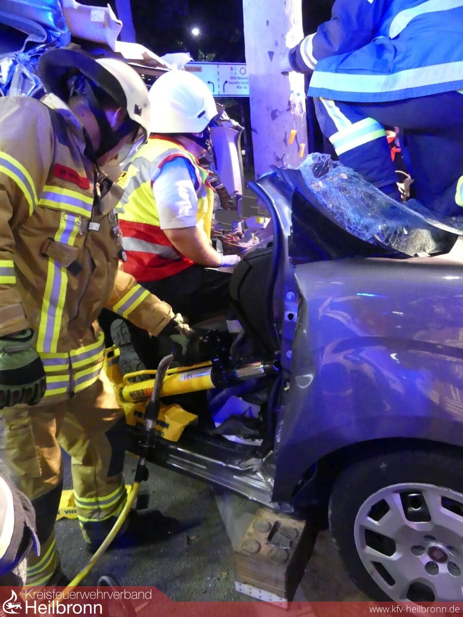 Am frühen Sonntagmorgen gegen halb vier Uhr rückte der Gerätezug zu einem Verkehrsunfall in die Heilbronner Weipertstaße aus.