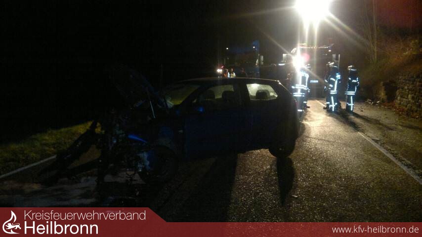Mit Stichwort \"Pkw-Brand\" wurde die kleine Schleife der Einsatzabteilung Neudenau alarmiert. Die Abfrage bei der Integrierten Leiststelle (ILS) Heilbronn ergab, dass es zwischen Neudenau und Siglingen zu einem Verkehrsunfall gekommen war und der unfallbeteiligte Pkw rauchen würde.