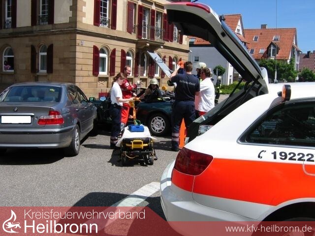 Aus noch ungeklärter Ursache kollidierten zwei BMW auf der Kreuzung Heilbronner- / Nordheimer Straße. Zunächst war gemeldet, dass eine Person noch im Fahrzeug eingeklemmt sei - so dass zusätzlich zum Rettungsdienst auch die Feuerwehr Leingarten alarmiert wurde.