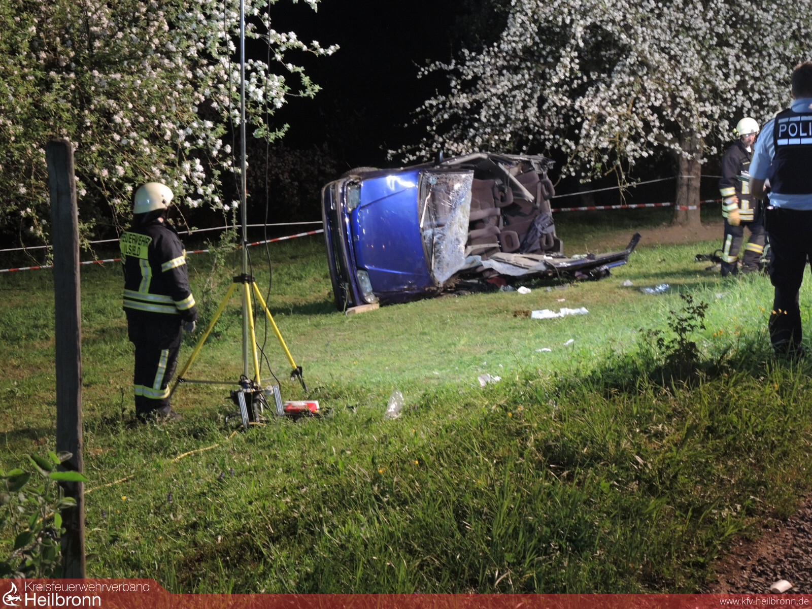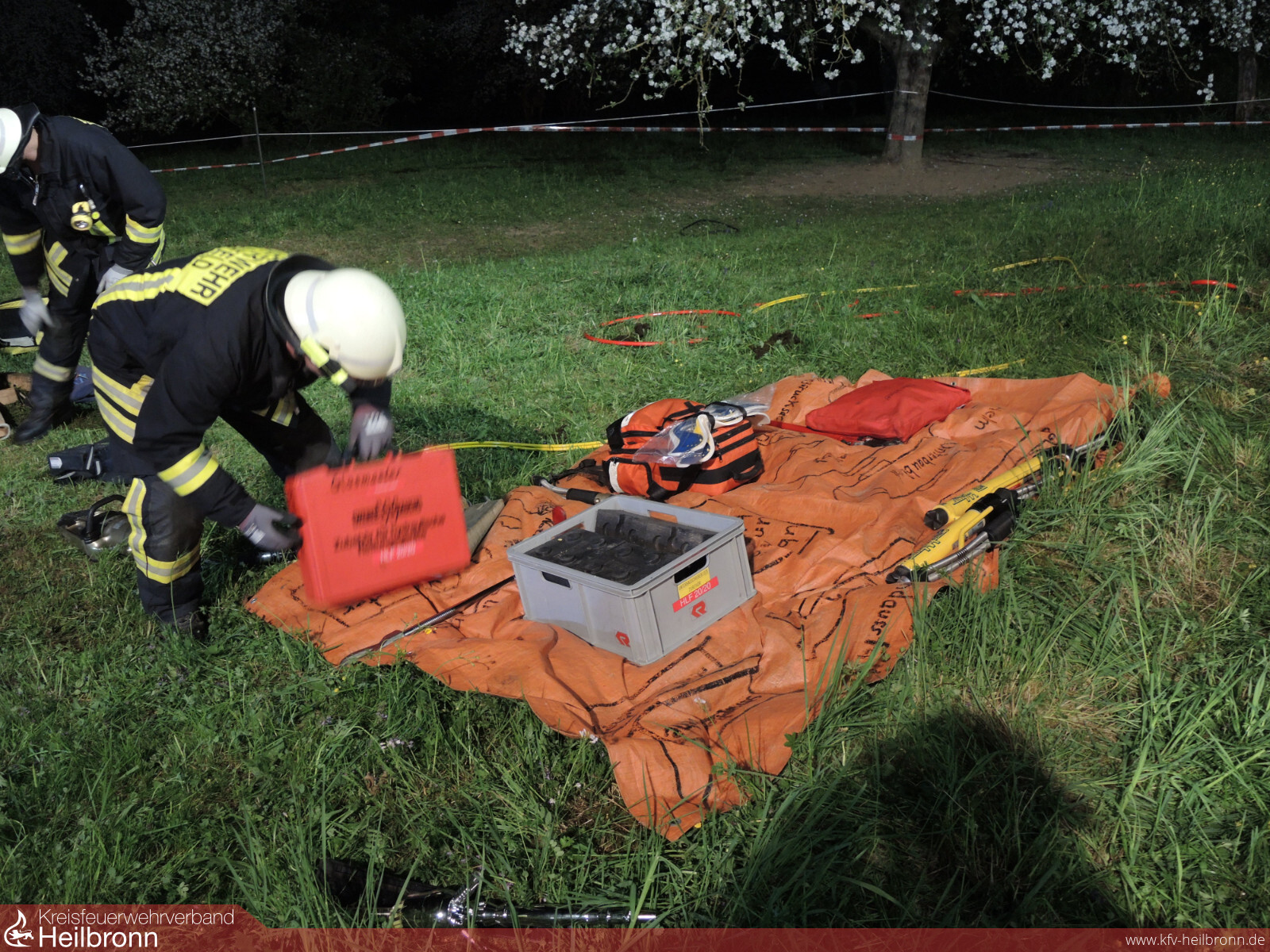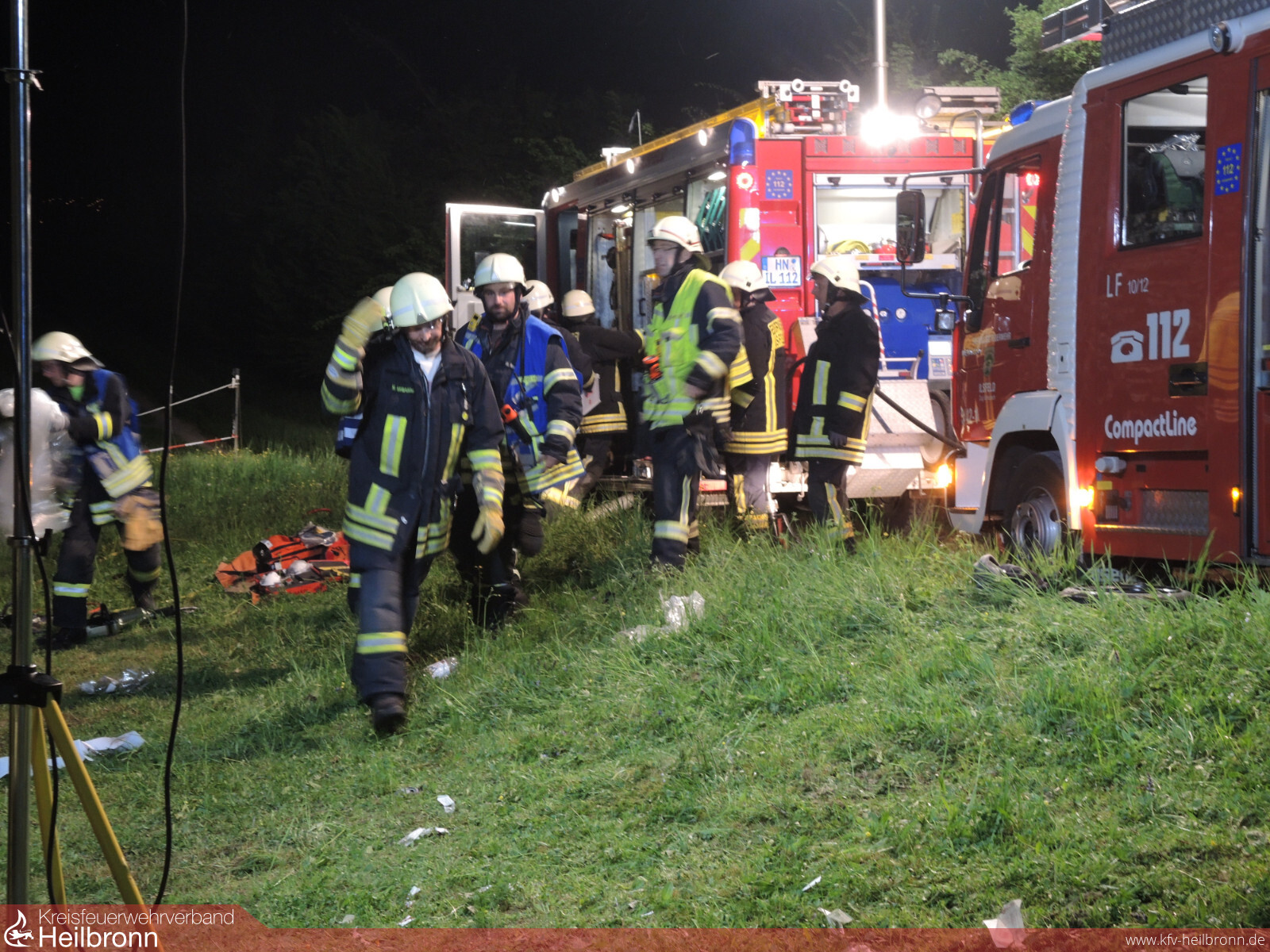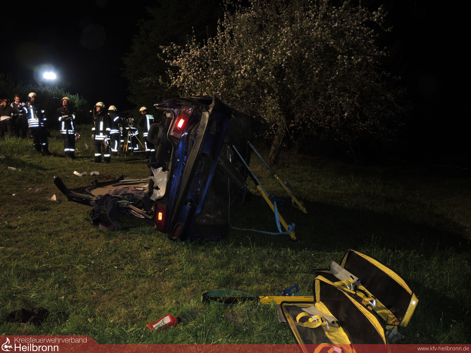 Die Feuerwehr Ilsfeld wurde zur L1105 zwischen Ilsfeld und Laufen am Landturm alarmiert. Der Fahrer eines Pkw's kam mit seinem Fahrzeug links von der Straße ab, schanzte über den Beginn einer Schutzplanke , fuhr etwa 100 Meter neben der Fahrbahn in einem Graben weiter und überschlug sich dann. Die beiden Fahrzeuginsassen waren im Fahrzeugwrack eingeklemmt und mussten von der Feuerwehr Ilsfeld befreit werden. Außerdem unterstützte die Feuerwehr noch beim Ausleuchten der Unfallstelle sowie dem Transport der Verletzten von der Unfallstelle zum Rettungswagen. Es waren 2 Rettungswagen ein Notarzteinsatzfahrzeug und 3 Polizeistreifen und 4 Fahrzeuge der Feuerwehr Ilsfeld im Einsatz.