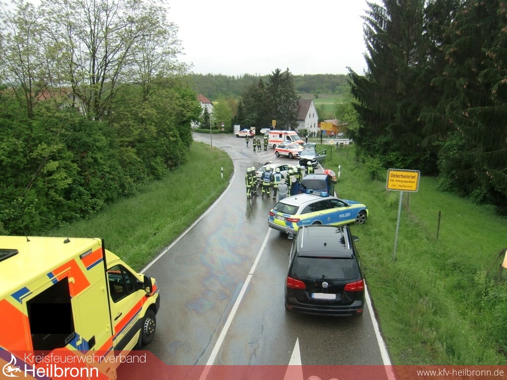 1 Noch während des PKW-Brandes im Ortsteil Untergruppenbach wurde die Feuerwehr zu einem Frontalzusammenstoß zweier Fahrzeuge auf die L1111 zwischen Happenbach und Unterheinriet alarmiert.