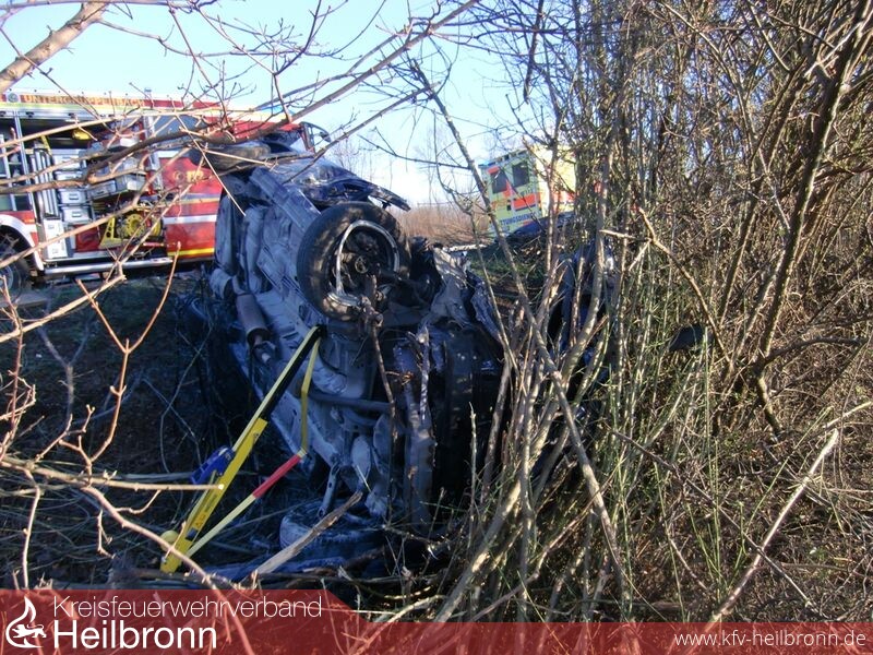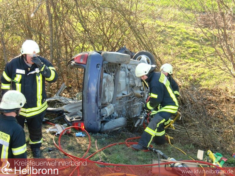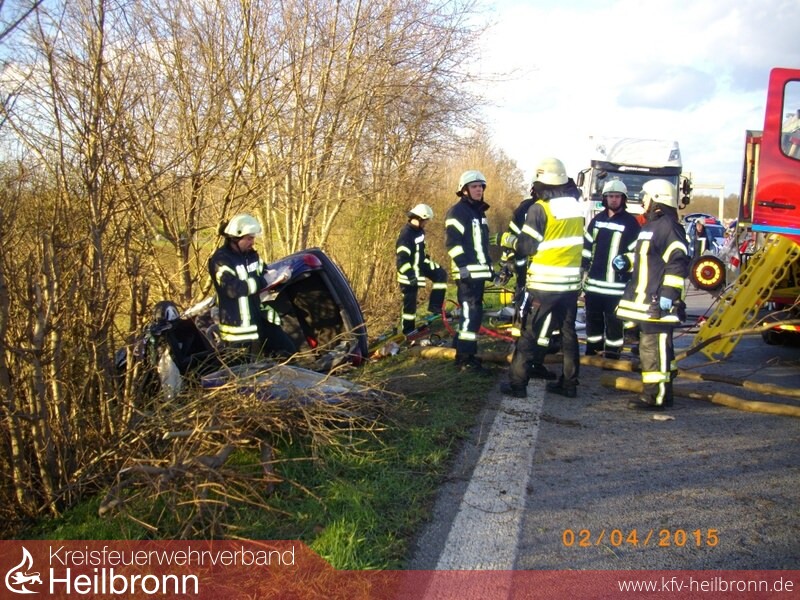 Hier war es zu einem Verkehrsunfall zwischen mehreren Fahrzeugen gekommen, in dessen Folge ein Fahrzeug gegen einen Baum geprallt war und auf der Fahrerseite zum Liegen kam. Der Fahrer erlitt hierbei schwerste Verletzungen und wurde in seinem Fahrzeug eingeklemmt..