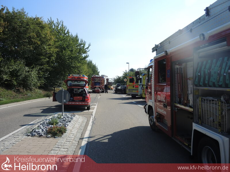 Die Feuerwehr Ilsfeld wurde mit dem Alarmstichwort Verkehrsunfall PKW - eine Person eingeklemmt - nach Auenstein alarmiert. Auf der Verbindungsstraße zwischen Auenstein und Helfenberg kam es im Bereich einer Kreuzung zu einem Zusammenstoß zwischen zwei Fahrzeugen.