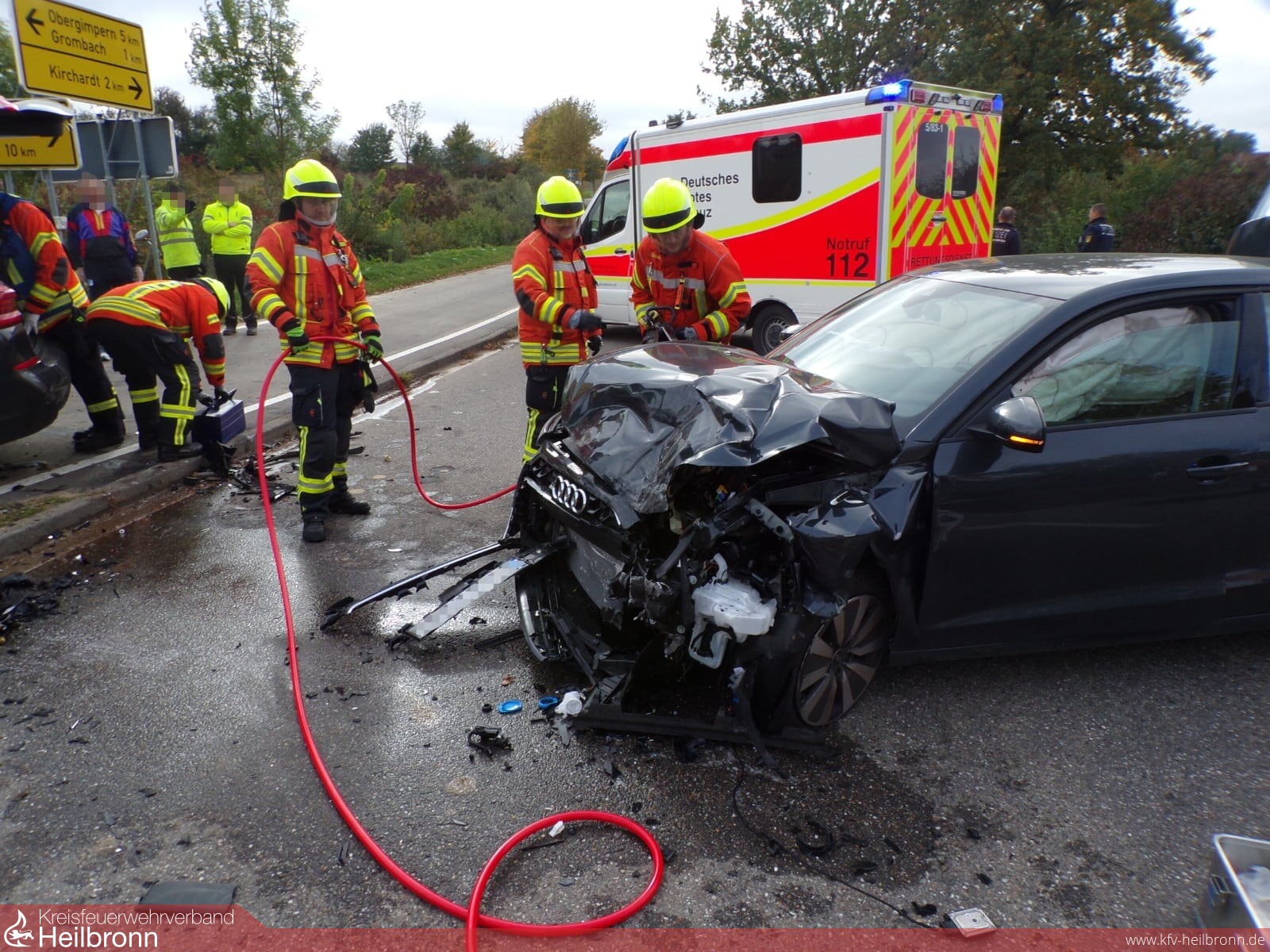 Mit dem Alarmstichwort „Verkehrsunfall PKW“ wurden die Abteilungen Grombach, Obergimpern und Bad Rappenau alarmiert.