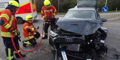 Im Kreuzungsbereich der Kirchardter Straße kollidierten zwei Pkw. Die Feuerwehr übernahm die Erstversorgung der verletzten Personen, sicherte die Unfallstelle ab und klemmte die Batterien der Unfallfahrzeuge ab, um eine Brandgefahr auszuschließen.