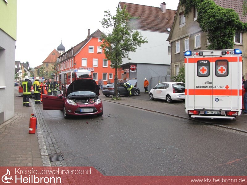Die Feuerwehr Oedheim wurde durch ILS Heilbronn über Funkmelder zu einem PKW-Brand in die Hauptstraße alarmiert. Beim Eintreffen an der Einsatzstelle war jedoch kein Brand erkennbar, stattdessen kam es hier zu einem Verkehrsunfall mit 2 beteiligten Fahrzeugen bei denen die Fahrzeugairbags ausgelöst wurden. Eine verletzte Person, welche vor dem Eintreffen der Feuerwehr das Auto verlassen konnte, wurde durch unseren Feuerwehrnotarzt betreut und im weiteren Verlauf dem Rettungsdienst übergeben. Ebenfalls wurde an beiden Fahrzeugen die Batterie abgeklemmt und der Brandschutz sicher gestellt. Während den Rettungsarbeiten war die Hauptstraße in beiden Richtungen komplett gesperrt.