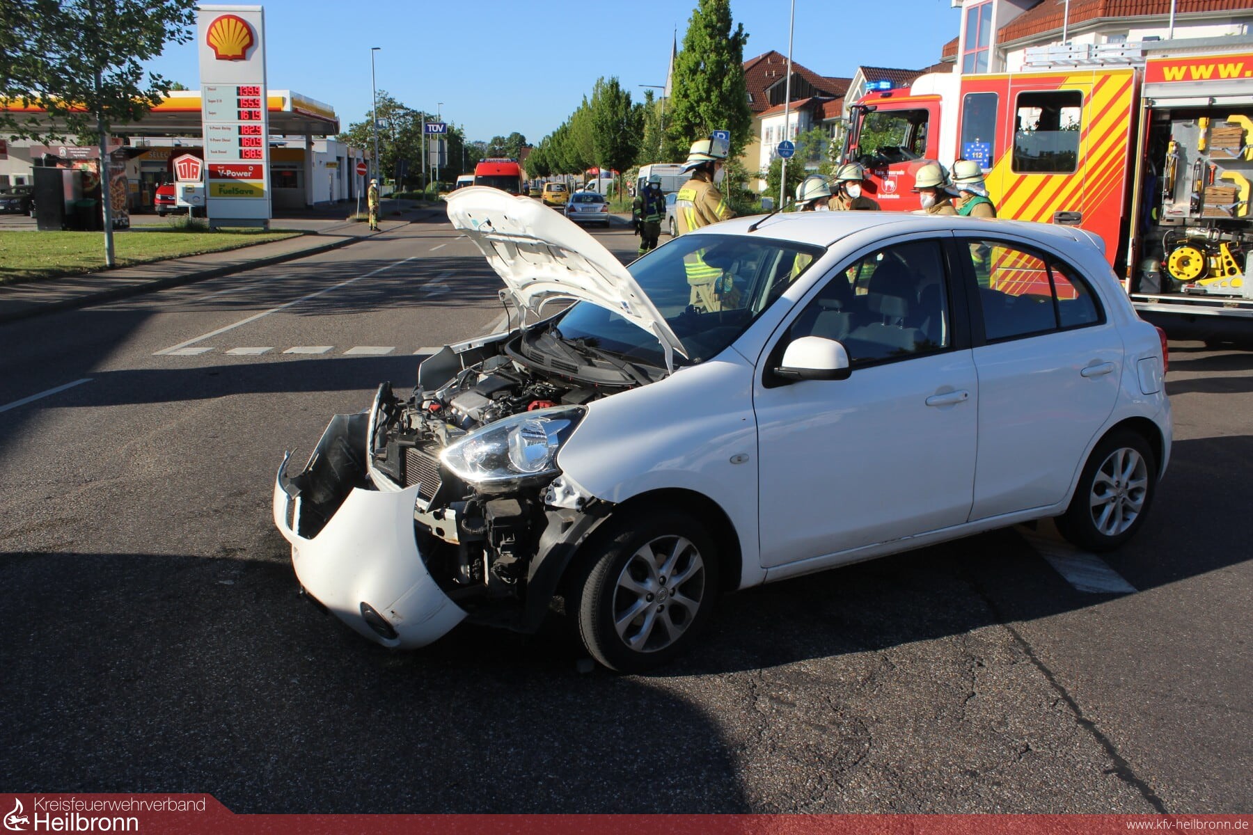 Eine sehr kurze Anfahrt hatte die Abteilung Brackenheim zu einem Verkehrsunfall - die Einsatzstelle befand sich direkt auf der Kreuzung vor dem Feuerwehrhaus.