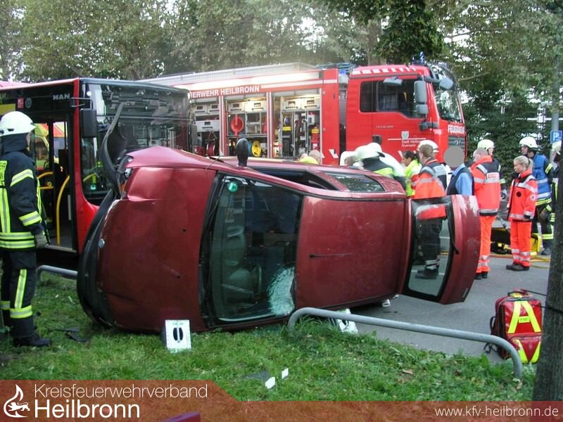Die Fahrerin des Puntos scherte vermutlich bei einem Spurwechsel zu knapp vor dem Linienbus ein. Hierbei kam es zu einem Streifvorgang wodurch der Pkw weggeschleudert wurde und sich nach einem Zusammenstoß mit einem Stromleitungsmasten aufstellte und auf die Seite kippte.