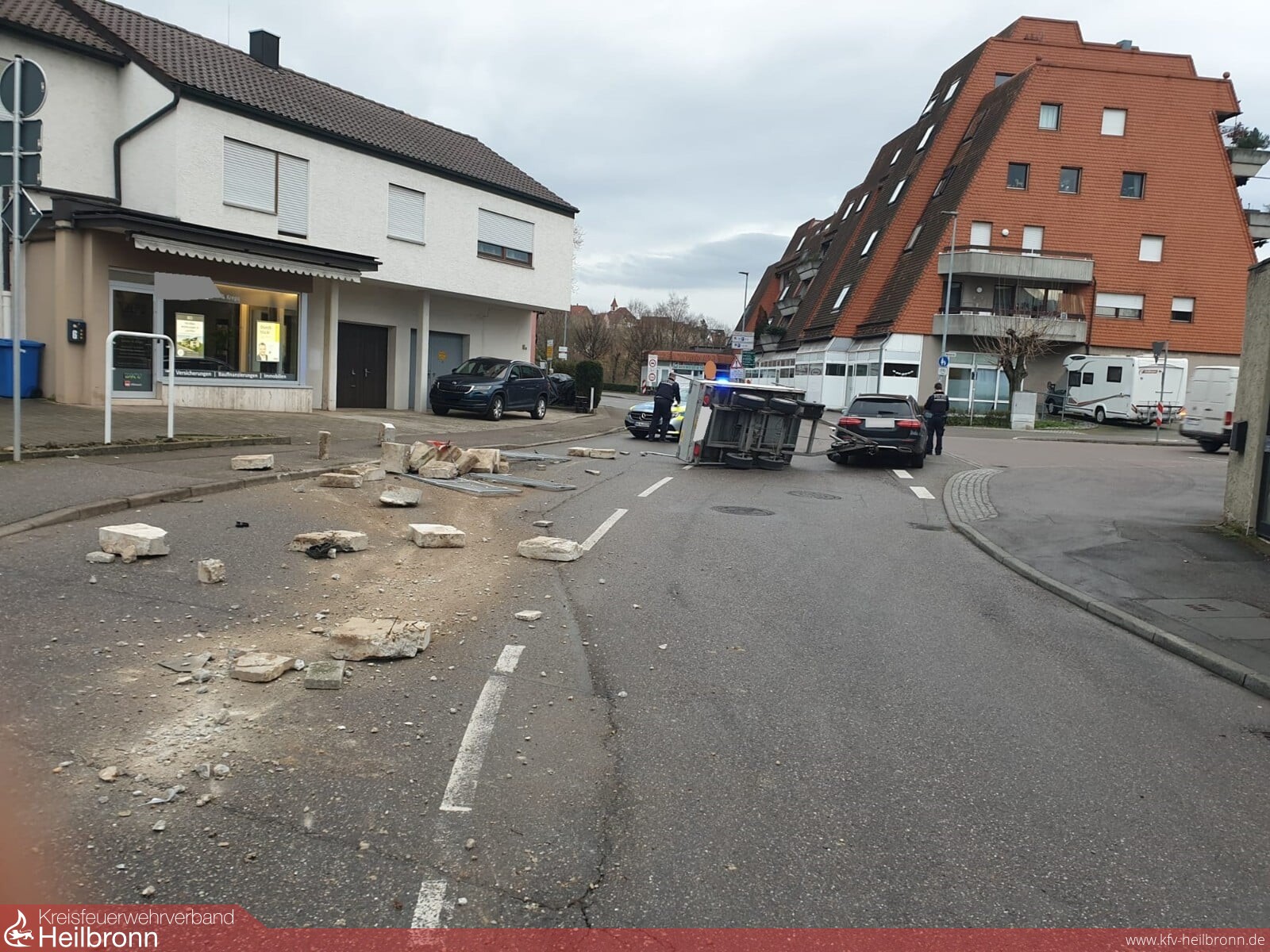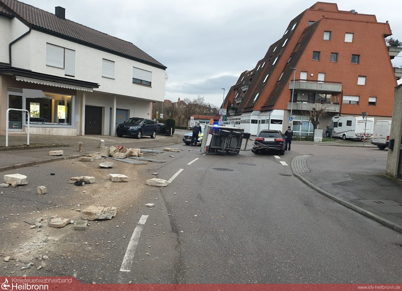 Als das Gespann im Bereich Seestraße/Stuttgarter Straße unterwegs war, kippte der Anhänger um und die geladenen Betonteile verteilten sich auf der Fahrbahn. Ein in das Geschehen involvierter weiterer Pkw wurde im Bereich der Fahrerseite erheblich beschädigt.