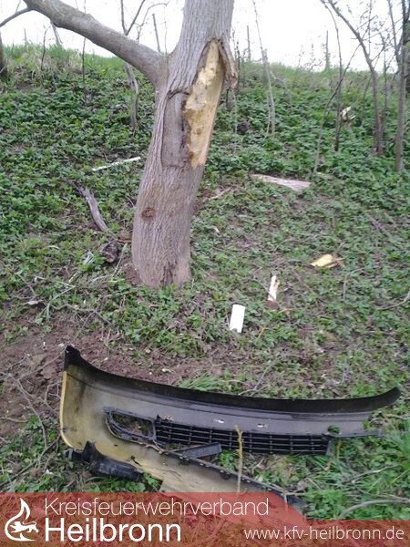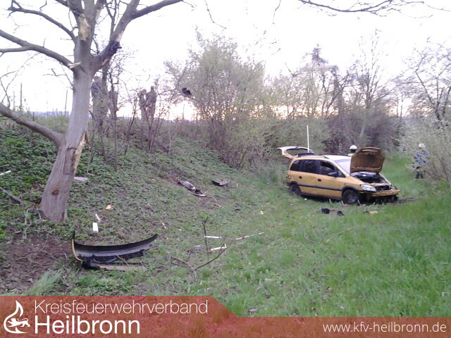 Vermutlich war eine überhöhte Geschwinigkeit der Grund dafür, dass der Fahrzeugführer, welcher mit seinem Kfz auf der L 1105 aus Richtung Ilsfeld kommend, auf Höhe des Landgraben die Kontrolle über sein Kfz verloren hat. Das Fahrzeug kam von der Fahrbahn ab und hat sich offensichtlich in dem rund drei Meter tieferliegenden Landgraben überschlagen und dabei noch einen Baum touchiert. Das Kfz, welches dann auf den Rädern zum stehen kam, begann im Bereich des Motorraumes zu brennen. Der Fahrer konnte sich äußerlich unverletzt, selbst aus dem Fahrzeug retten.