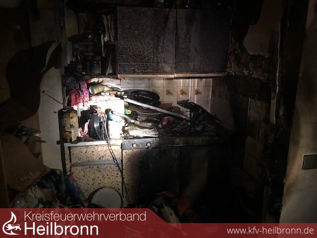 Noch während die Einsatzkräfte mit Nachlöscharbeiten beim vorherigen Einsatz gebunden waren, musste die Freiwillige Feuerwehr, Abteilung Heilbronn -Stadt- um 21.01 Uhr zu einem Zimmerbrand in die Innenstadt ausrücken. Vor Ort brannte die Küche einer Wohnung im dritten Obergeschoss eines Mehrfamilienhauses. Das Feuer konnte rasch gelöscht und die Räumlichkeiten mittels Druckbelüftungsgerät entraucht werden. Zwei Bewohner mussten wegen einer Rauchgasinhalation vom Rettungsdienst behandelt werden. In der Wohnung selbst entstand ein Schaden von schätzungsweise 30.000 Euro.