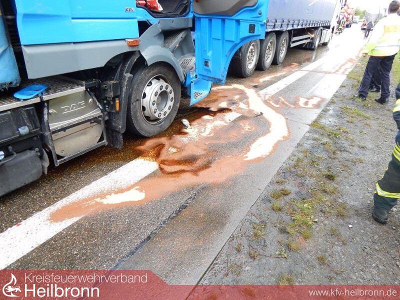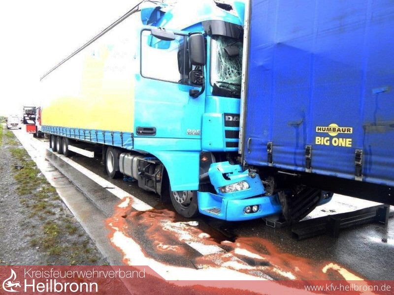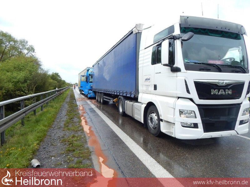 Um 14.04 Uhr erfolgte bereits die zweite Alarmierung zu einem Verkehrsunfall mit einem LKW auf die A6. Am Ende des Staus des ersten Unfalls fuhr ein LKW auf seinen stehenden Vordermann auf. Auch hier wurden keine Personen eingeklemmt. Die Einsatzkräfte sicherten die Einsatzstelle und nahmen ausgelaufene Betriebsstoffe auf.