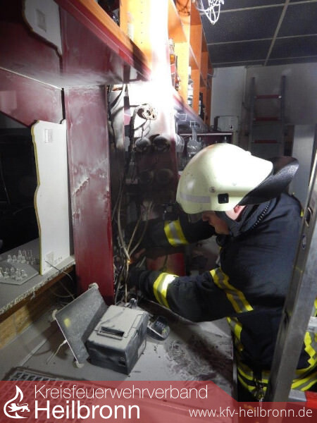 Unter einer Verkleidung im Thekenbereich war eine Elektroinstallation in Brand geraten. Beim Eintreffen der Feuerwehr vor Ort, konnte eine Verrauchung des gesamten Lokals festgestellt werden. Anwesende hatten das Feuer bereits mit einem Pulverlöscher bekämpft. Die Feuerwehr führte sofort Nachlöscharbeiten sowie Lüftungsmaßnahmen durch. Der betroffene Bereich wurde kontrolliert und von einer Elektrofachkraft der Feuerwehr vom Stromnetz getrennt.