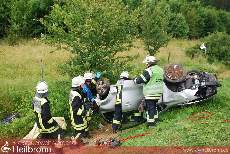 wurden nebeneinander nach rechts von der Autobahn hinab geschleudert. Der VW überschlug sich, der Mercedes schlug eine 120 Meter lange Bresche in den Wald und fuhr dabei mehrere Bäume sowie einen Wildschutzzaun um. Der Daimler-Fahrer wurde eingeklemmt und musste mit schweren Verletzungen von der Feuerwehr befreit werden. Seine Beifahrerin erlitt leichte Verletzungen. Die 32 Jahre alte Beifahrerin im Polo musste ebenfalls von der Feuerwehr aus dem Wrack des Wagens geschnitten werden. Sie erlitt schwerste Verletzungen und musste mit dem Rettungshubschrauber in eine Spezialklinik geflogen werden. Ihr 29-jähriger Fahrer wurde ebenfalls schwer verletzt. Ein im Polo sitzender Rottweiler-Pitbull-Mix wurde aus dem Auto geschleudert und verschwand anschließend. Er wurde bislang nicht gefunden. Auf der A 81 kam es bis 12 Uhr zu Behinderungen, da nur ein Fahrstreifen frei war. Zur Landung des Rettungshubschraubers musste die Fahrbahn zeitweise ganz gesperrt werden.
