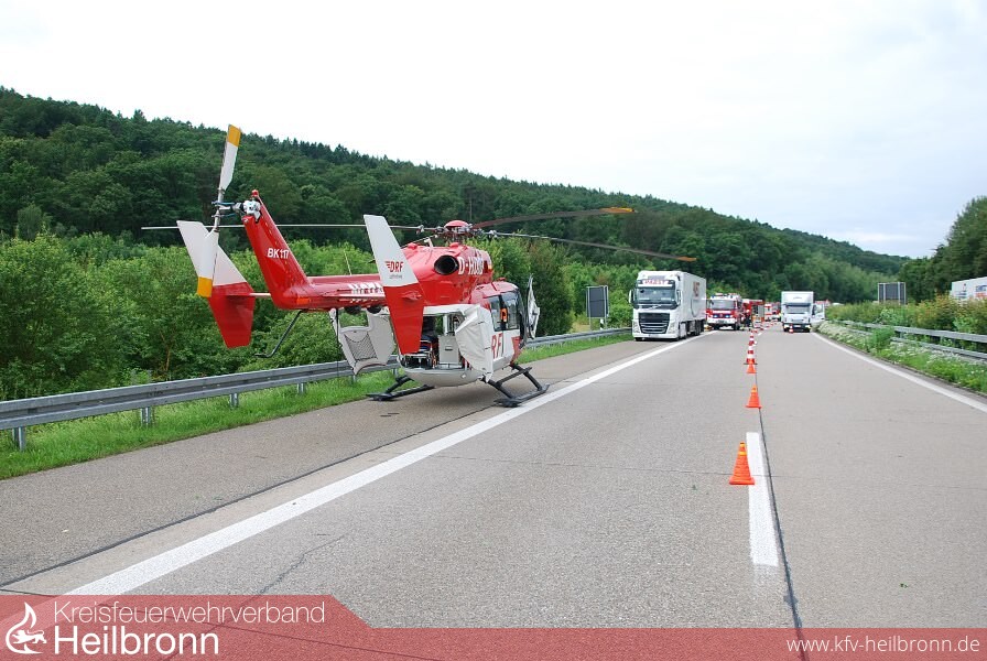 Vier zum Teil schwer Verletzte und 80.000 Euro Sachschaden waren die Folgen eines Unfalls am Dienstagmorgen auf der A 81 zwischen dem Weinsberger Kreuz und der Brücke Hölzern. Ein 58-Jähriger fuhr kurz nach 9 Uhr mit seinem Mercedes mit sehr hoher Geschwindigkeit auf dem linken Fahrstreifen in Richtung Würzburg, als direkt vor ihm ein VW Polo von der rechten auf die linke Fahrspur wechselte. Trotz einer Vollbremsung des Mercedesfahrers stießen die beiden PKW zusammen und