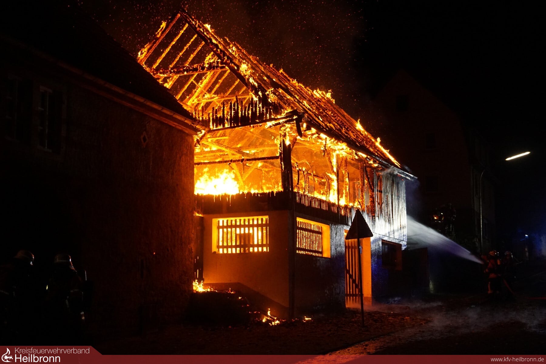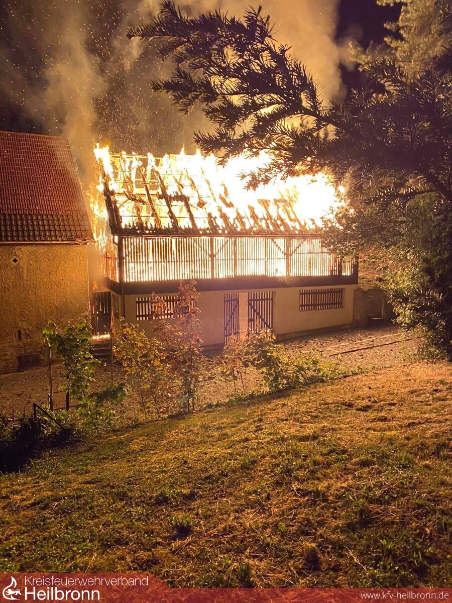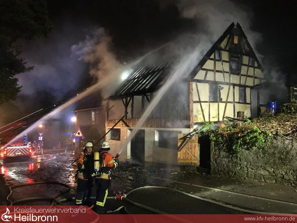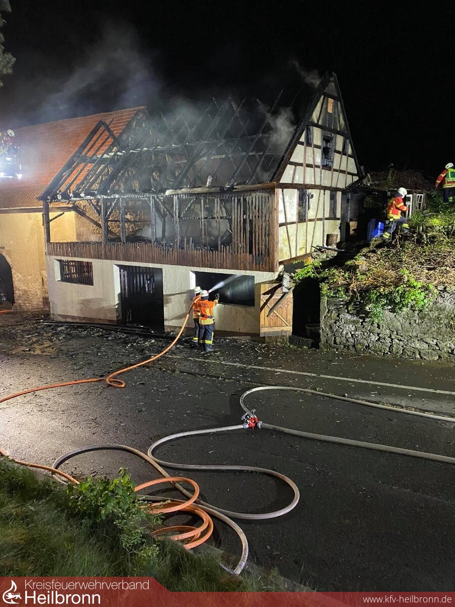 Ein Vollbrand einer Scheune am Rande der eng bebauten Altstadt beschäftigte die Feuerwehr Gundelsheim in der Nacht von Montag auf Dienstag. Durch massive Riegelstellungen konnten die angrenzenden Gebäude gehalten werden. Nachdem das Feuer gelöscht war, wurde noch eine Brandwache eingerichtet, die immer wieder kleinere Glutnester ablöschen musste. Im Einsatz waren neben der Feuerwehr Gundelsheim die Feuerwehr Bad Friedrichshall sowie die Berufsfeuerwehr Heilbronn.