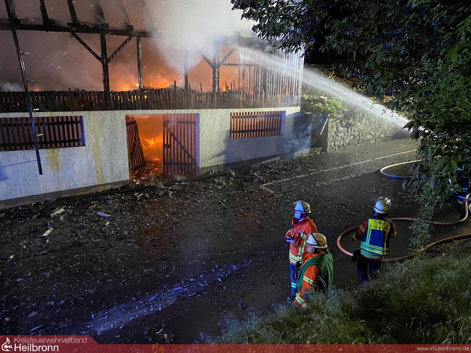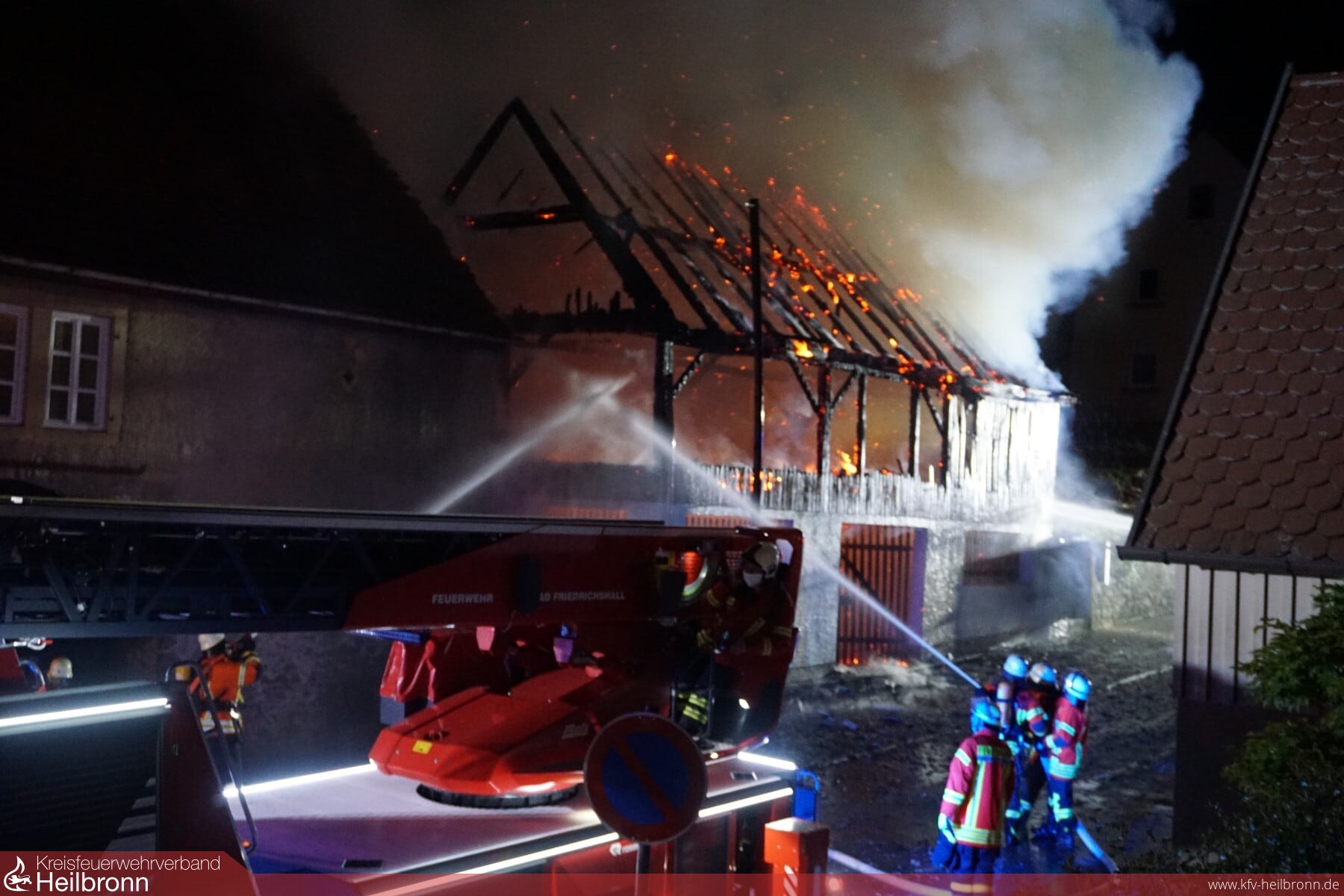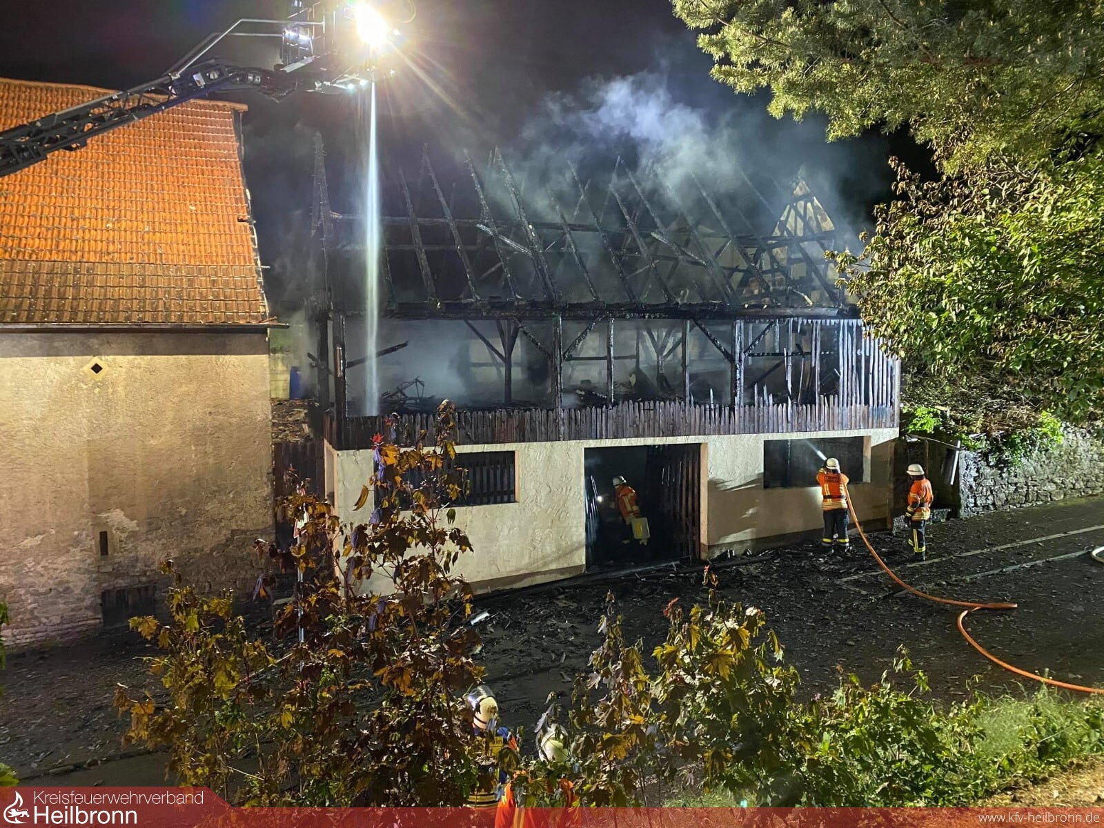 Ein Vollbrand einer Scheune am Rande der eng bebauten Altstadt beschäftigte die Feuerwehr Gundelsheim in der Nacht von Montag auf Dienstag. Durch massive Riegelstellungen konnten die angrenzenden Gebäude gehalten werden. Nachdem das Feuer gelöscht war, wurde noch eine Brandwache eingerichtet, die immer wieder kleinere Glutnester ablöschen musste. Im Einsatz waren neben der Feuerwehr Gundelsheim die Feuerwehr Bad Friedrichshall sowie die Berufsfeuerwehr Heilbronn.