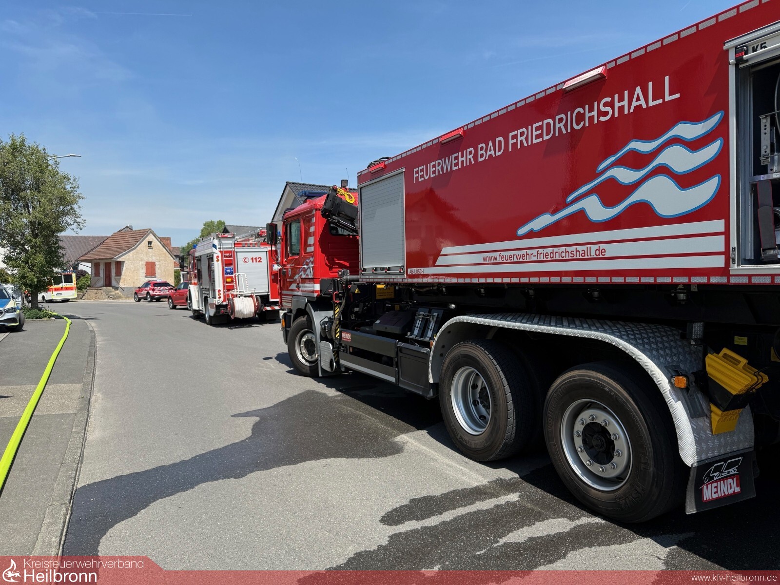 Der Brand selbst wurde mittels 2 C-Rohren auf der Gebäuderückseite und über die Drehleiter der Feuerwehr Bad Friedrichshall gelöscht.